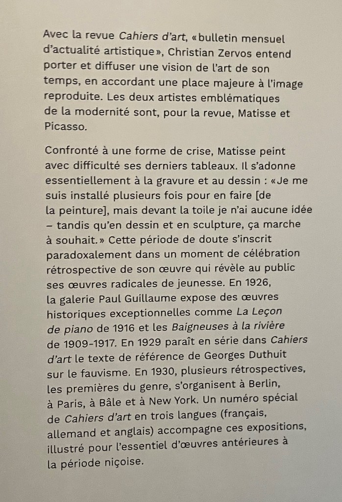 MATISSE Cahiers d’Art « Le tournant des années 1930 » Musée de l’Orangerie – depuis le 1er Mars 2023.