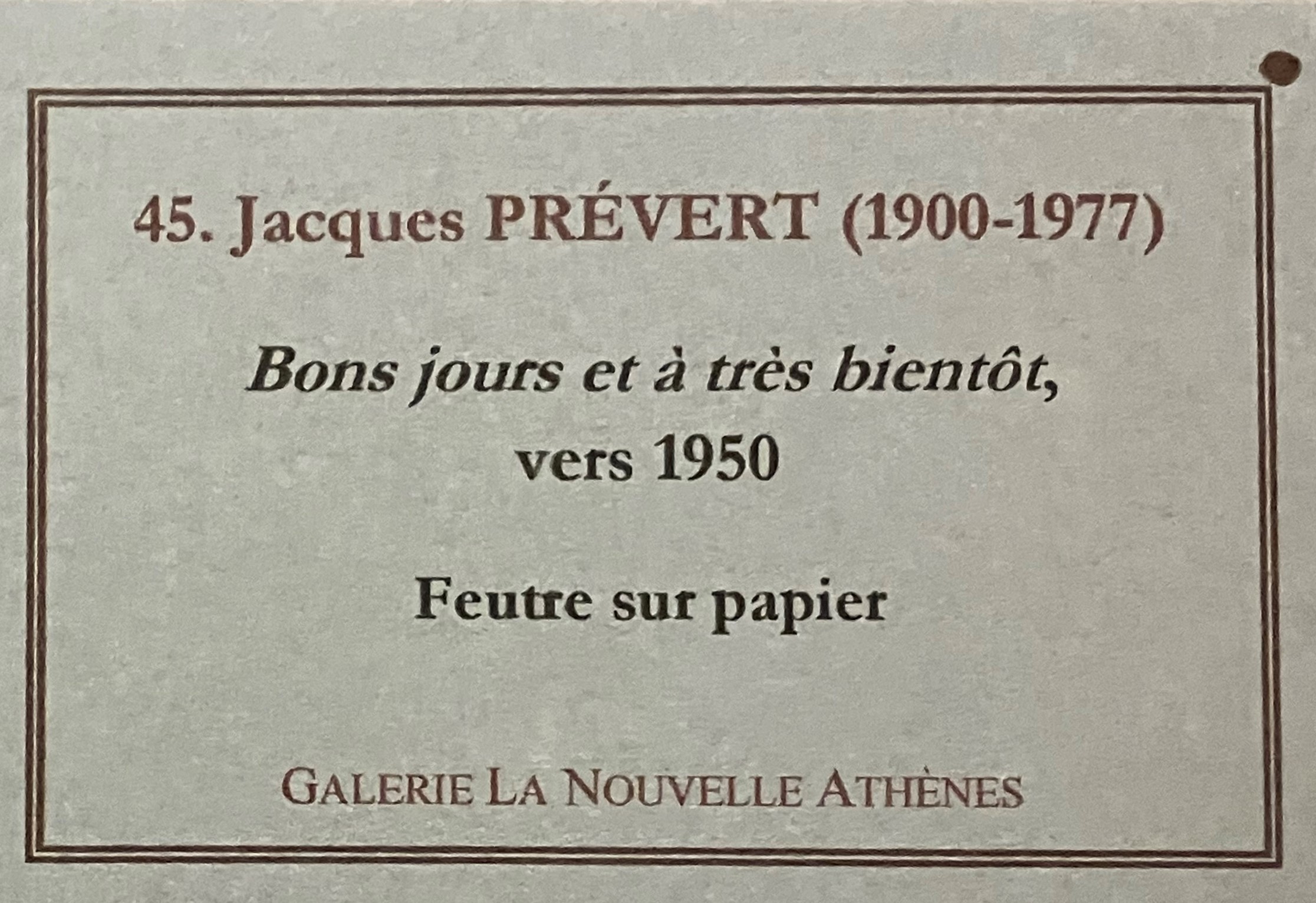 Pour cette nouvelle exposition et un bel accrochage accompagné de cartels précis et un beau catalogue accompagne la cinquantaine d’oeuvres. Des oeuvres riches et diverses bien choisies.