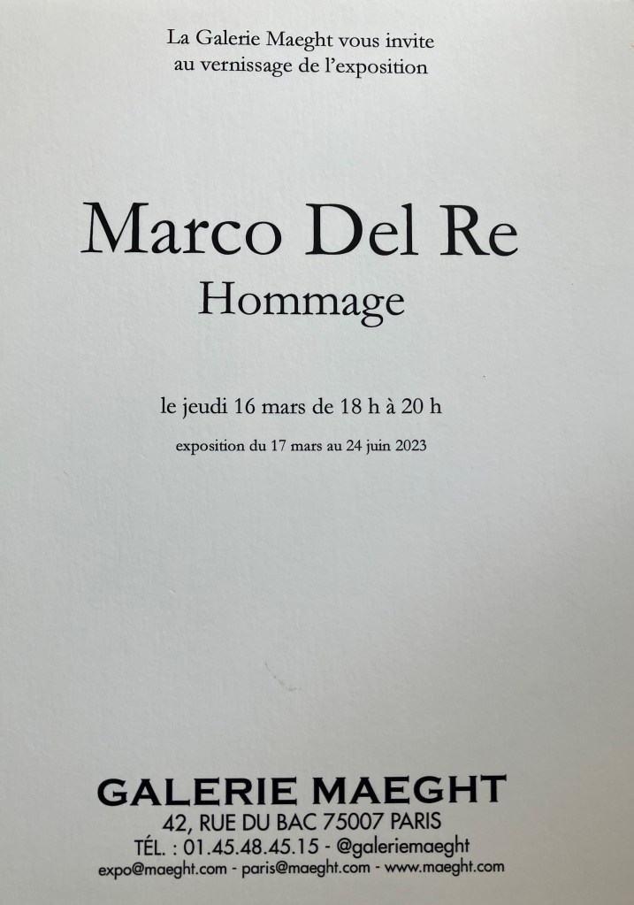 Galerie Maeght exposition : Marco Del Re – HOMMAGE – depuis le 16 Mars 2023.