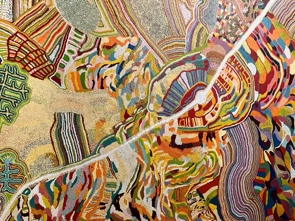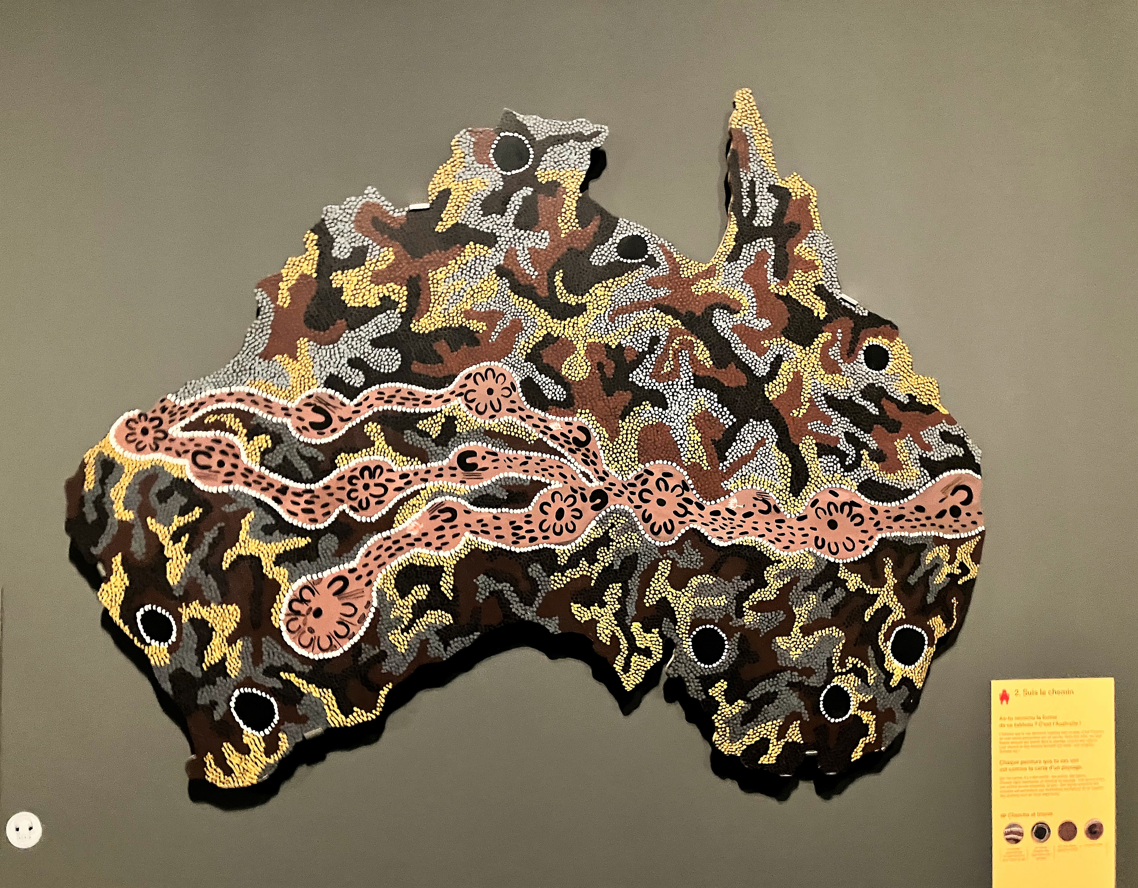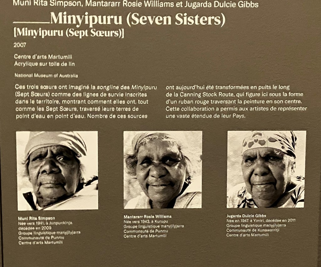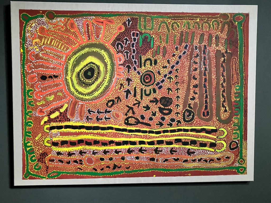 Cette exposition nous fait vivre une belle aventure , une exploration du monde et de la culture Aborigène – un riche voyage.