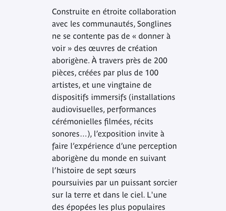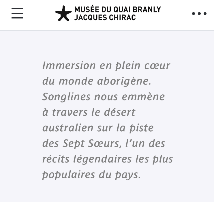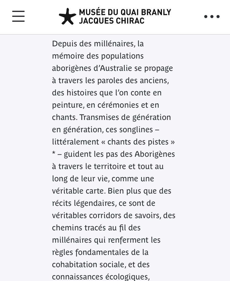 Musée du quai Branly Jacques Chirac – « Songlines » depuis le 4 Avril 2023.