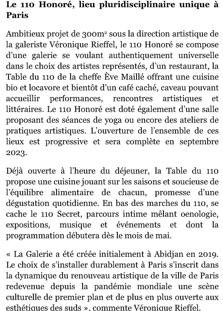 110 rue Saint Honoré Paris 1er.