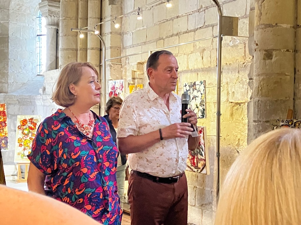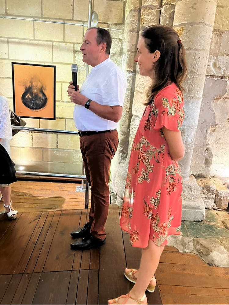 Une nombreuse assistance pour le dernier vernissage de la saison – l’artiste nous présente un joli travail pictural avec des constructions aux couleurs et matières qui sont une belle exploration vers l’essence de la beauté – un fort beau triptyque domine l’exposition.