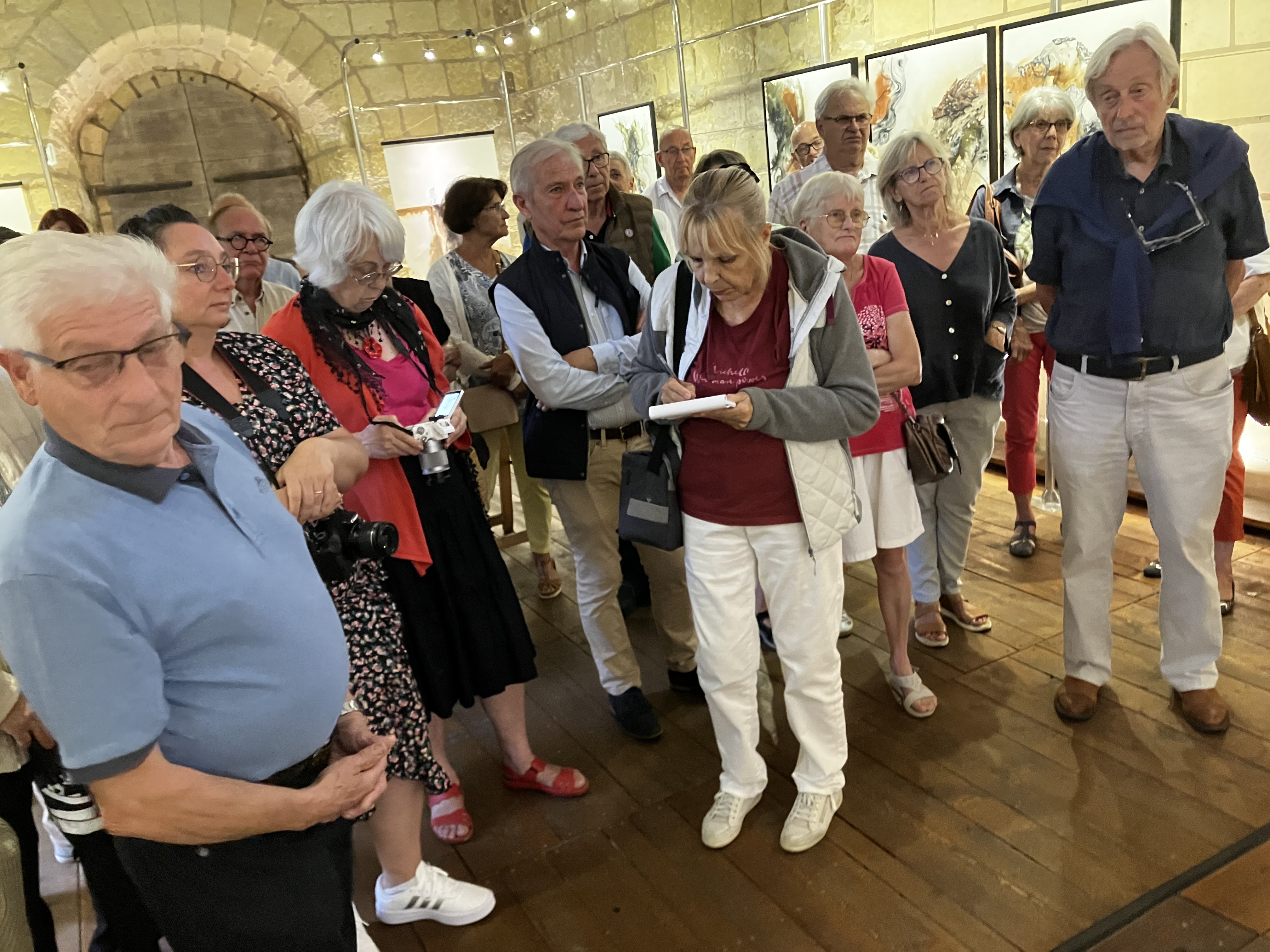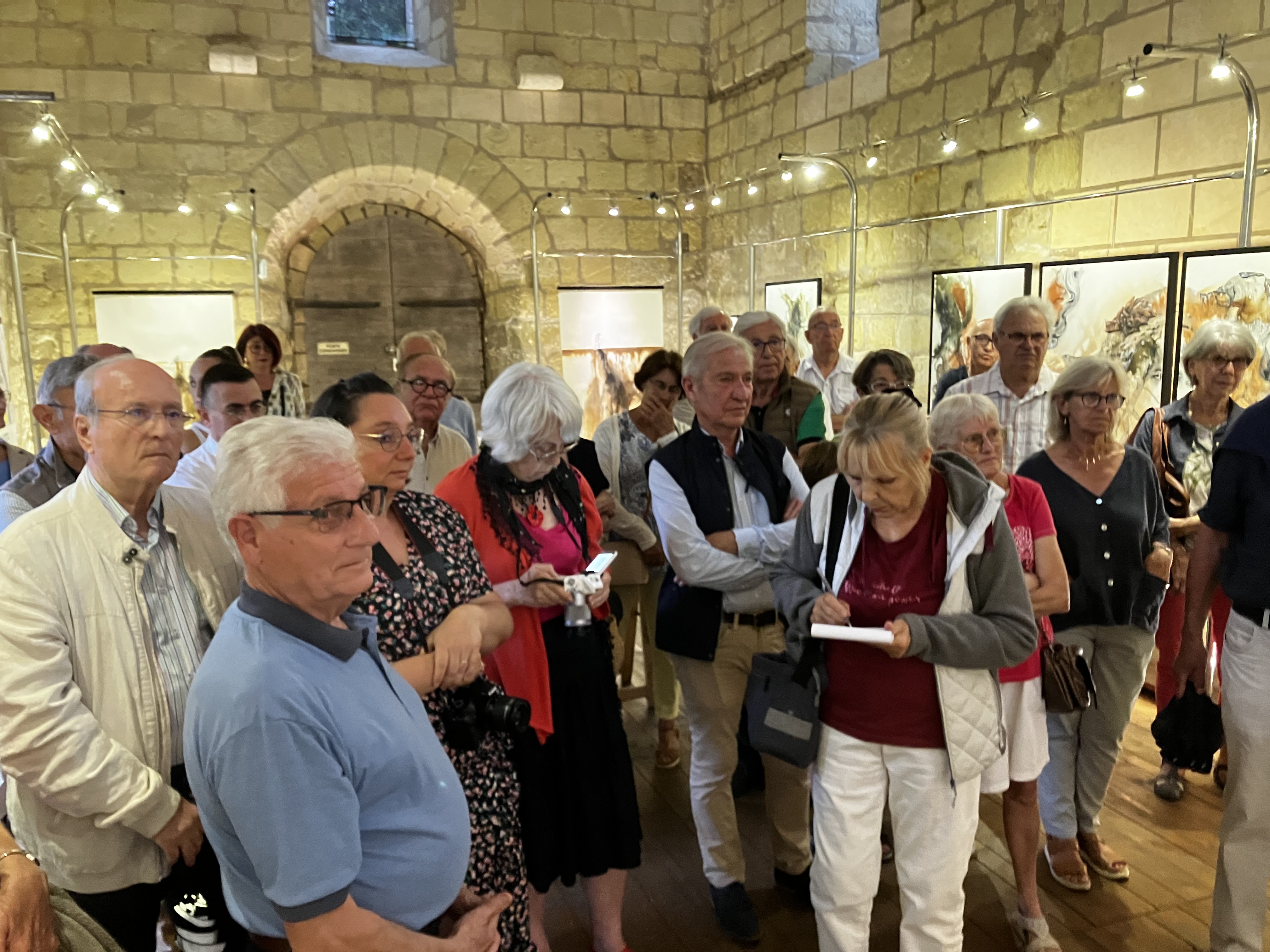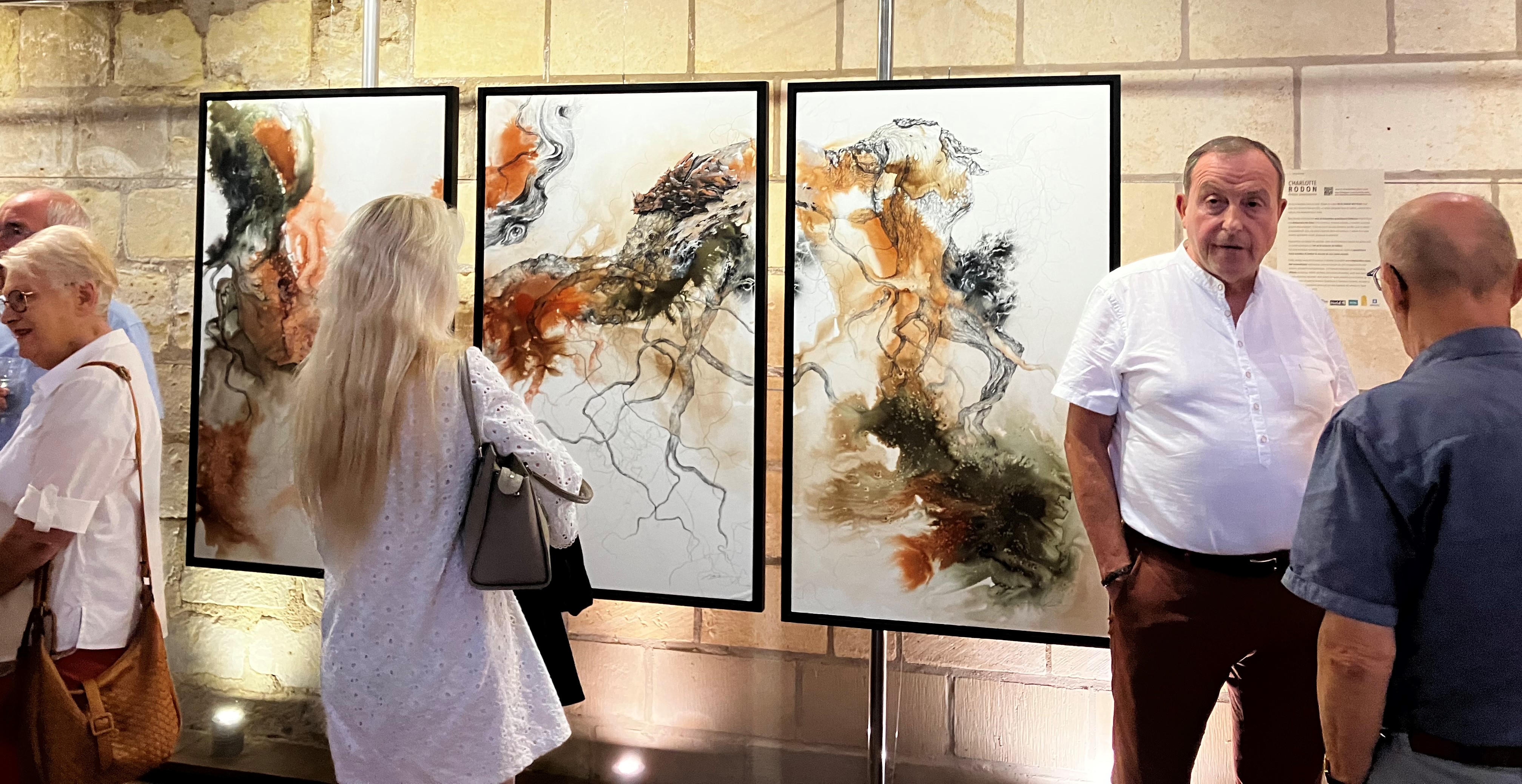 Une nombreuse assistance pour le dernier vernissage de la saison – l’artiste nous présente un joli travail pictural avec des constructions aux couleurs et matières qui sont une belle exploration vers l’essence de la beauté – un fort beau triptyque domine l’exposition.