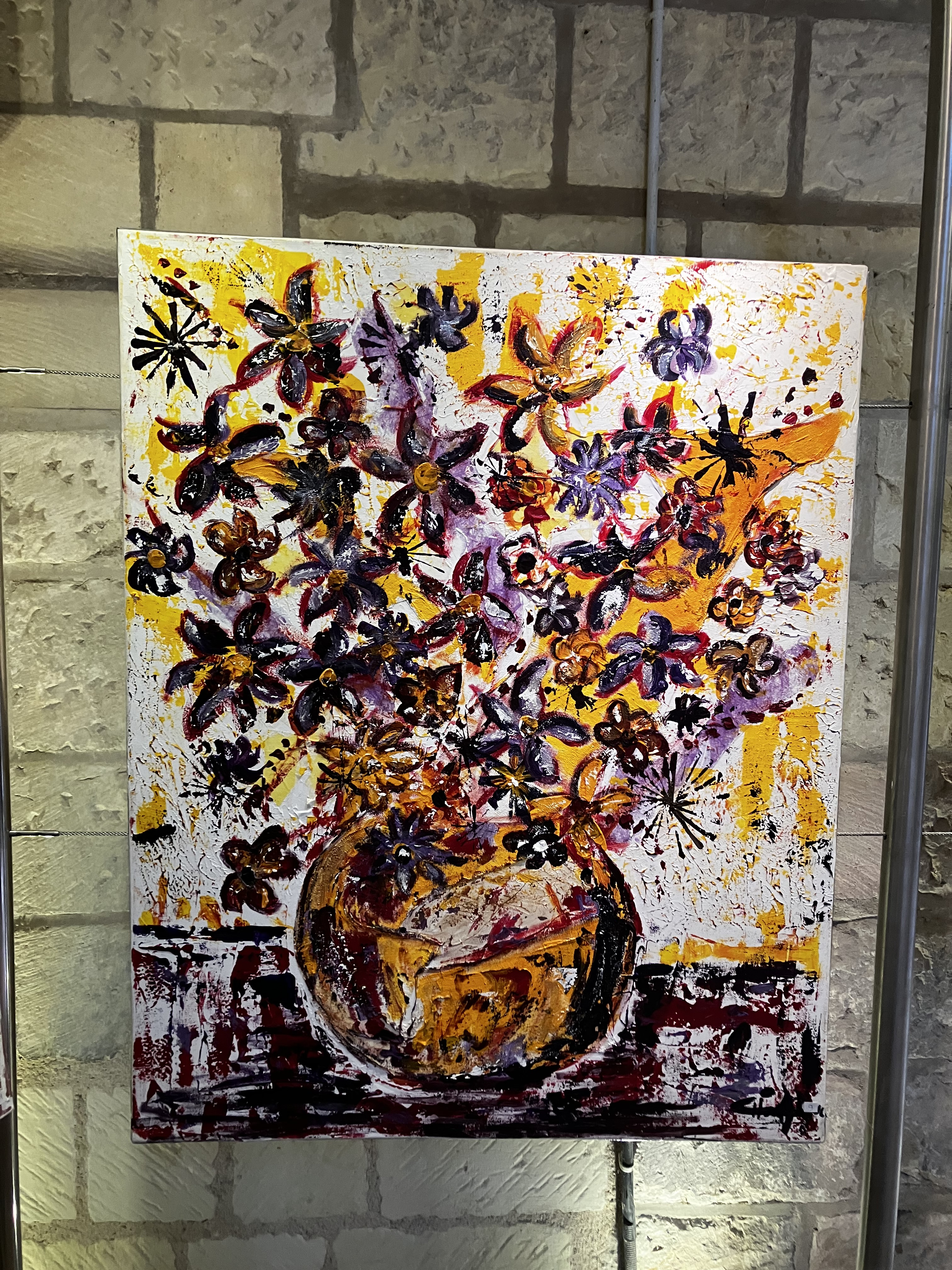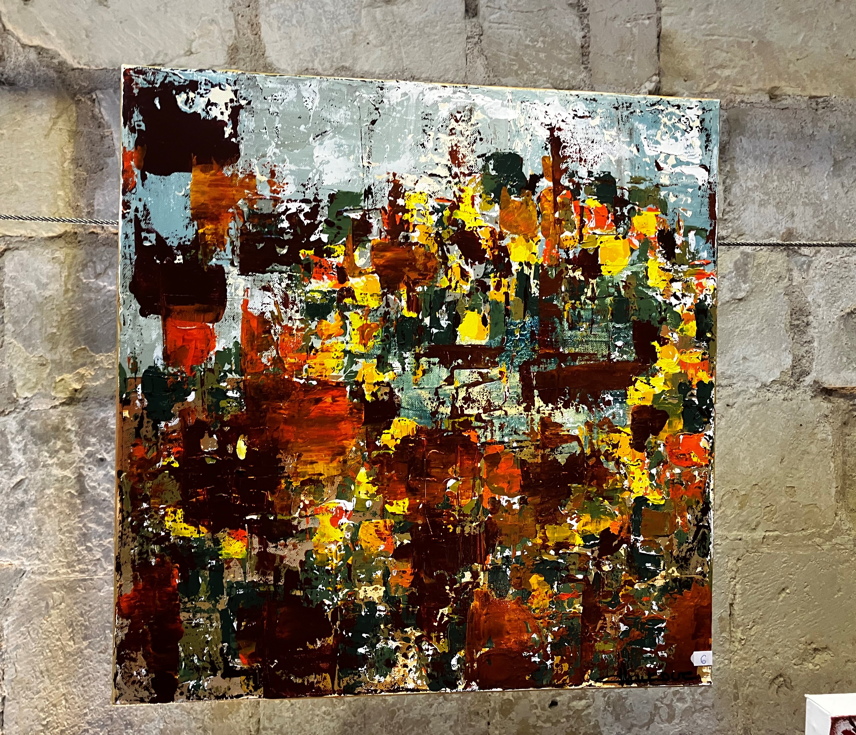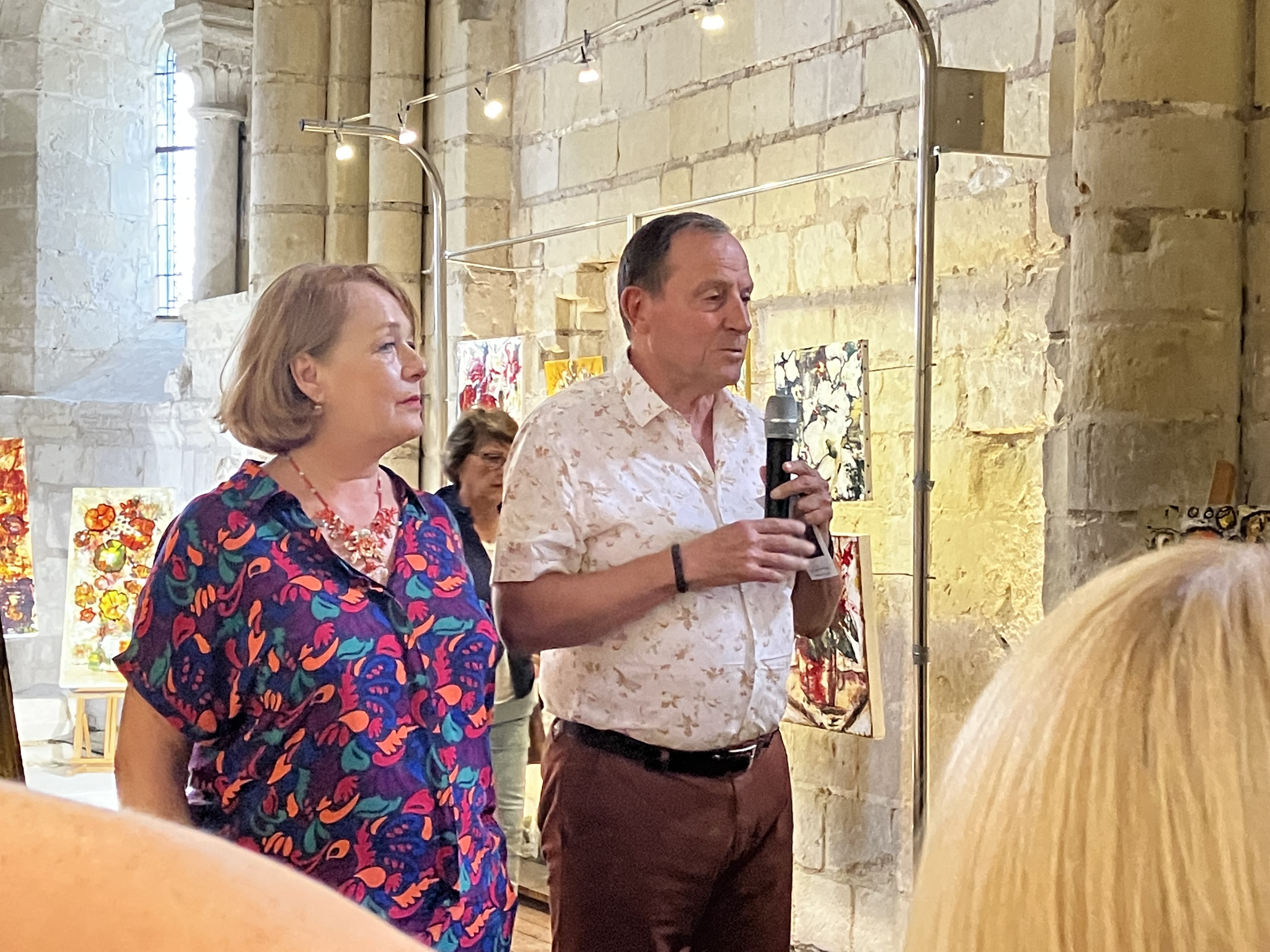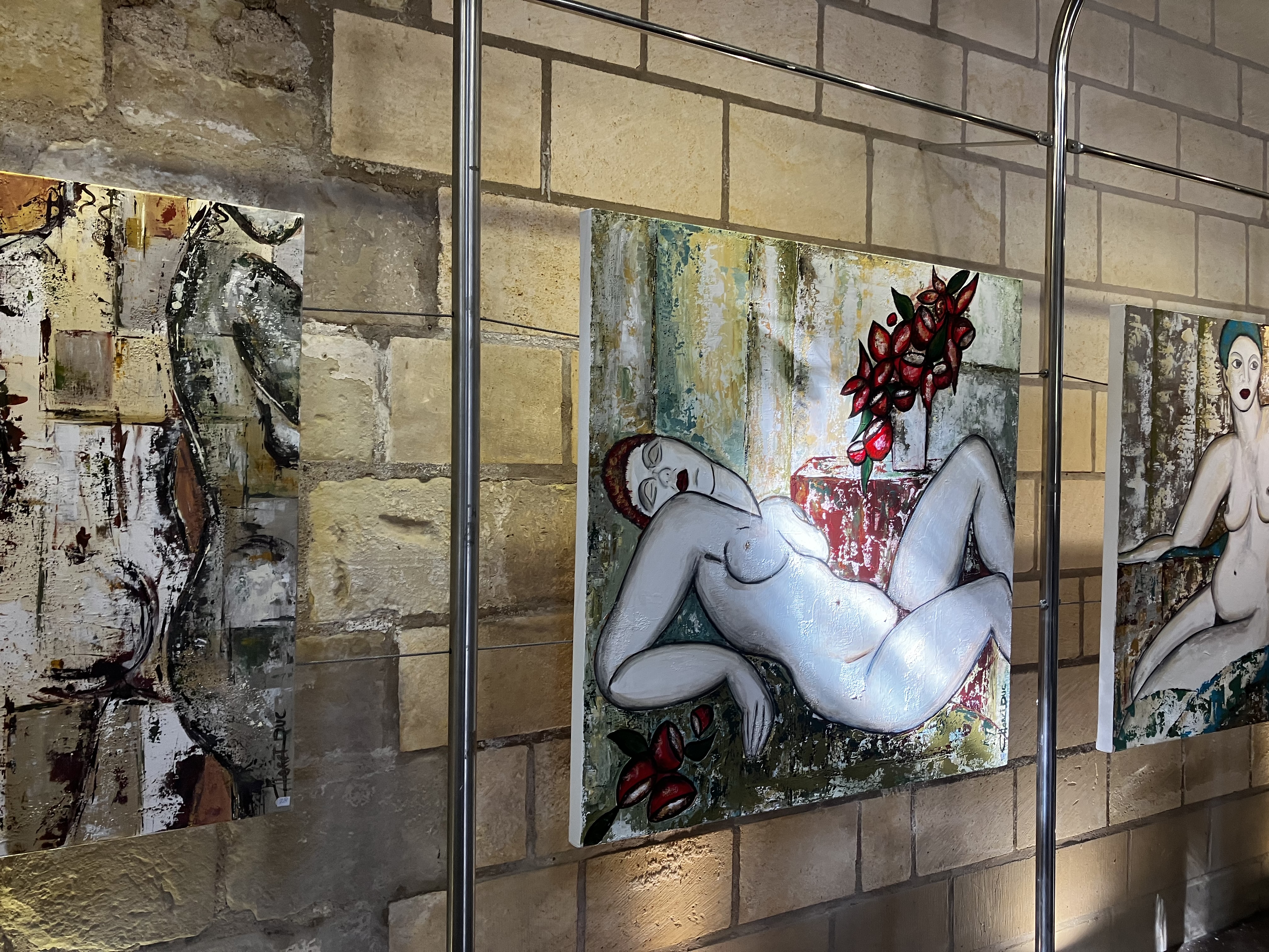 Une nombreuse assistance pour le dernier vernissage de la saison – l’artiste nous présente un joli travail pictural avec des constructions aux couleurs et matières qui sont une belle exploration vers l’essence de la beauté – un fort beau triptyque domine l’exposition.