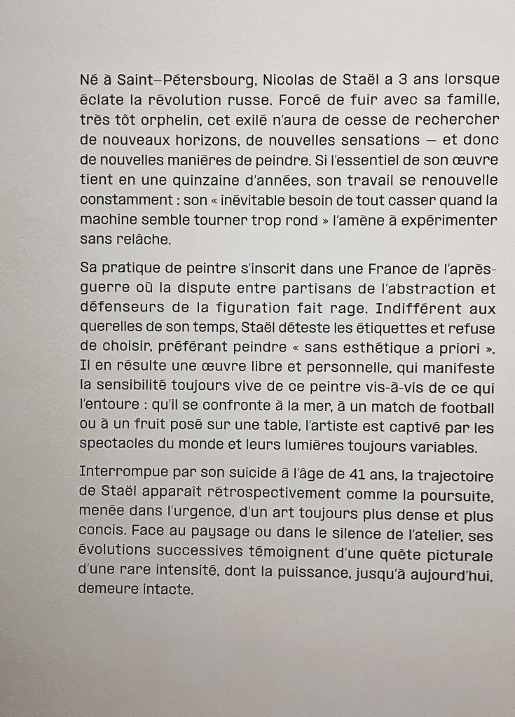 One Comment sur “Musée d’ Art Moderne (Paris) . exposition : Nicolas de Stael – 15 Septembre au 21 Janvier 2024.”