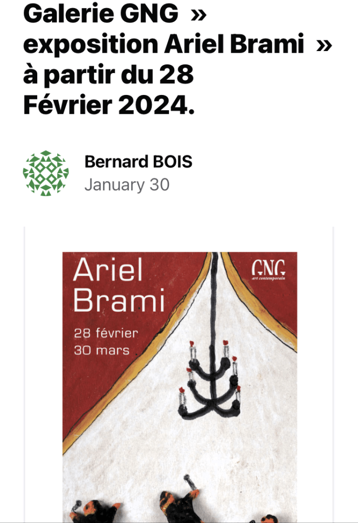 One Comment sur “Galerie GNG » exposition Ariel Brami » à partir du 28 Février 2024.”