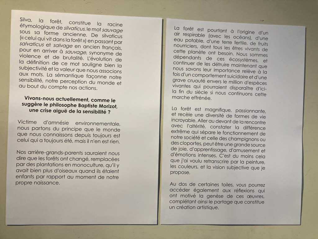 Une exposition hors du commun – l’artiste nous plonge dans son univers – ses recherches picturales et sa passion pour la nature -c’est un combat auquel il nous invite – nous sortons de l’exposition tout autrement – ses paroles et son message pictural – c’est un beau voyage et merci Ilan.