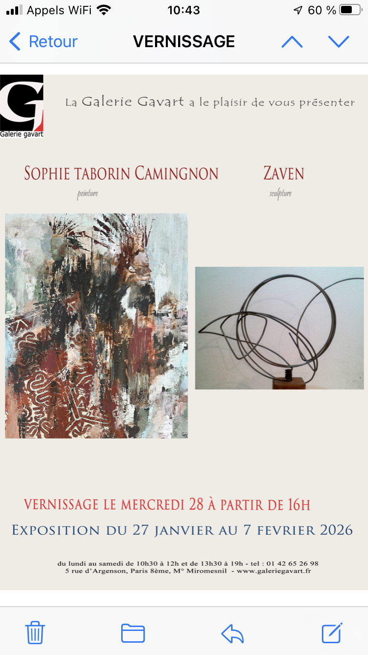 Galerie Gavart – exposition Sophie Taborin Camingnon -Zaven-à partir du 27 Janvier 2026.