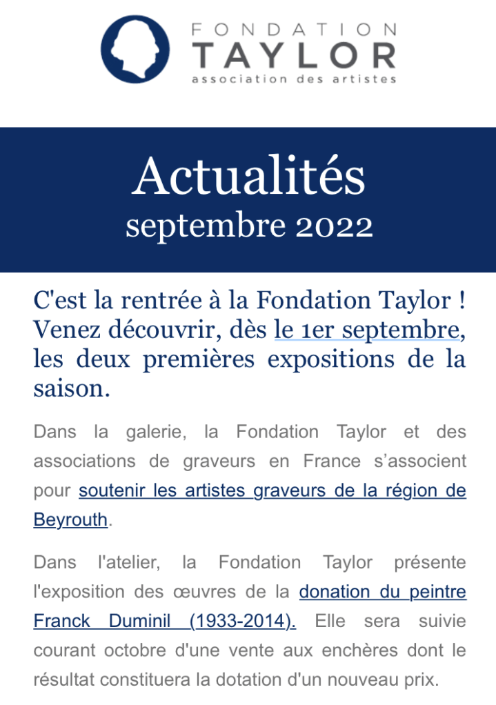 Comments: Commentaires fermés sur Fondation Taylor Septembre 2022. Des artistes graveurs.