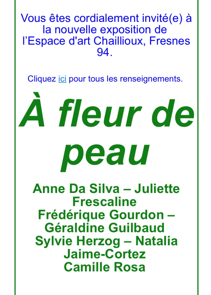 Comments: Commentaires fermés sur Espace d’Art Chaillioux à Fresnes « A fleur de peau » 10 Septembre au 29 Octobre 2022.