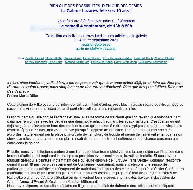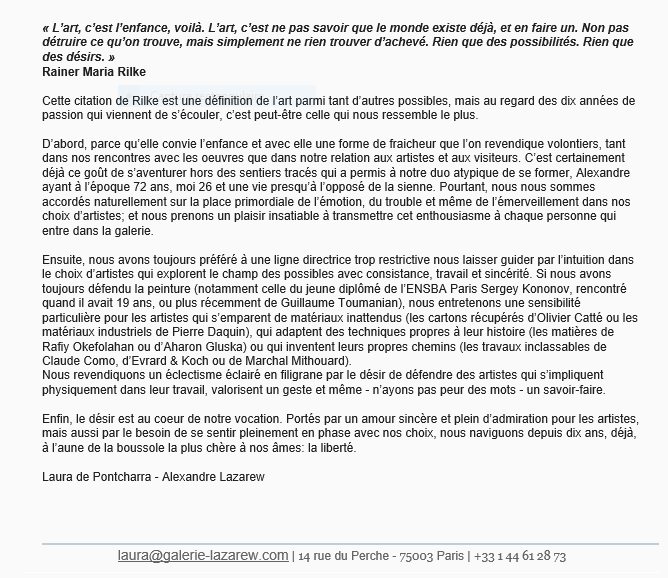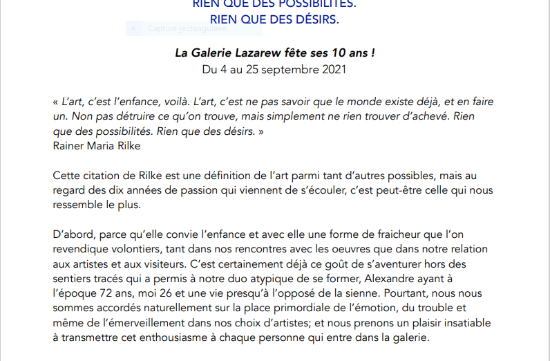 Catégories : art contemporain, galeries Comments: Commentaires fermés sur Galerie Lazarew fête ses 10 ans….