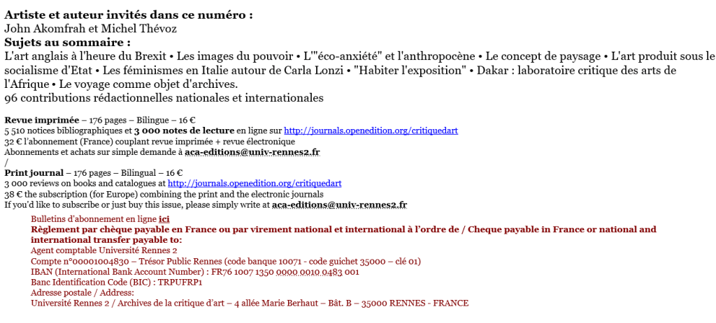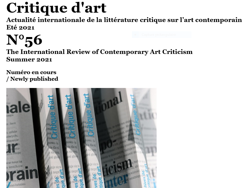 Catégories : art contemporain, littérature-livres-nouveautés Comments: Commentaires fermés sur La Critique d’Art no 56