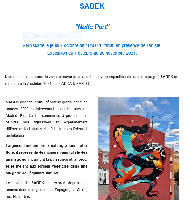 Catégories : art contemporain, galeries Comments: Commentaires fermés sur Galerie Adda & Sarto « SABEK – Nulle Part -«