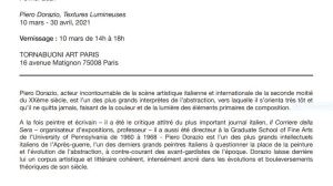 mars 6, 2021Galerie TornaBuoniART exposition Piero Dorazio « Textures lumineuses » à partir du 10 Mars 2021