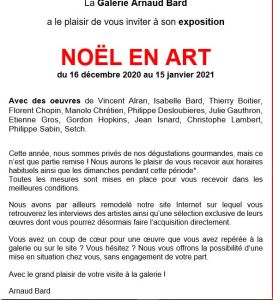 Catégories : art contemporain, galeries Comments: Commentaires fermés sur Galerie Arnaud Bard à Boulogne – Noël en Art – 16 Décembre au 15 Janvier 2021