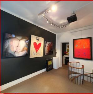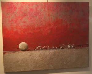 une superbe scénographie du beau travail de l’artiste-peintures et sculptures.