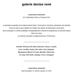 Catégories : art contemporain, galeries Comments: Commentaires fermés sur Galerie Denise René « Compositions abstraites » 14 Décembre 2020 au16 Janvier 2021