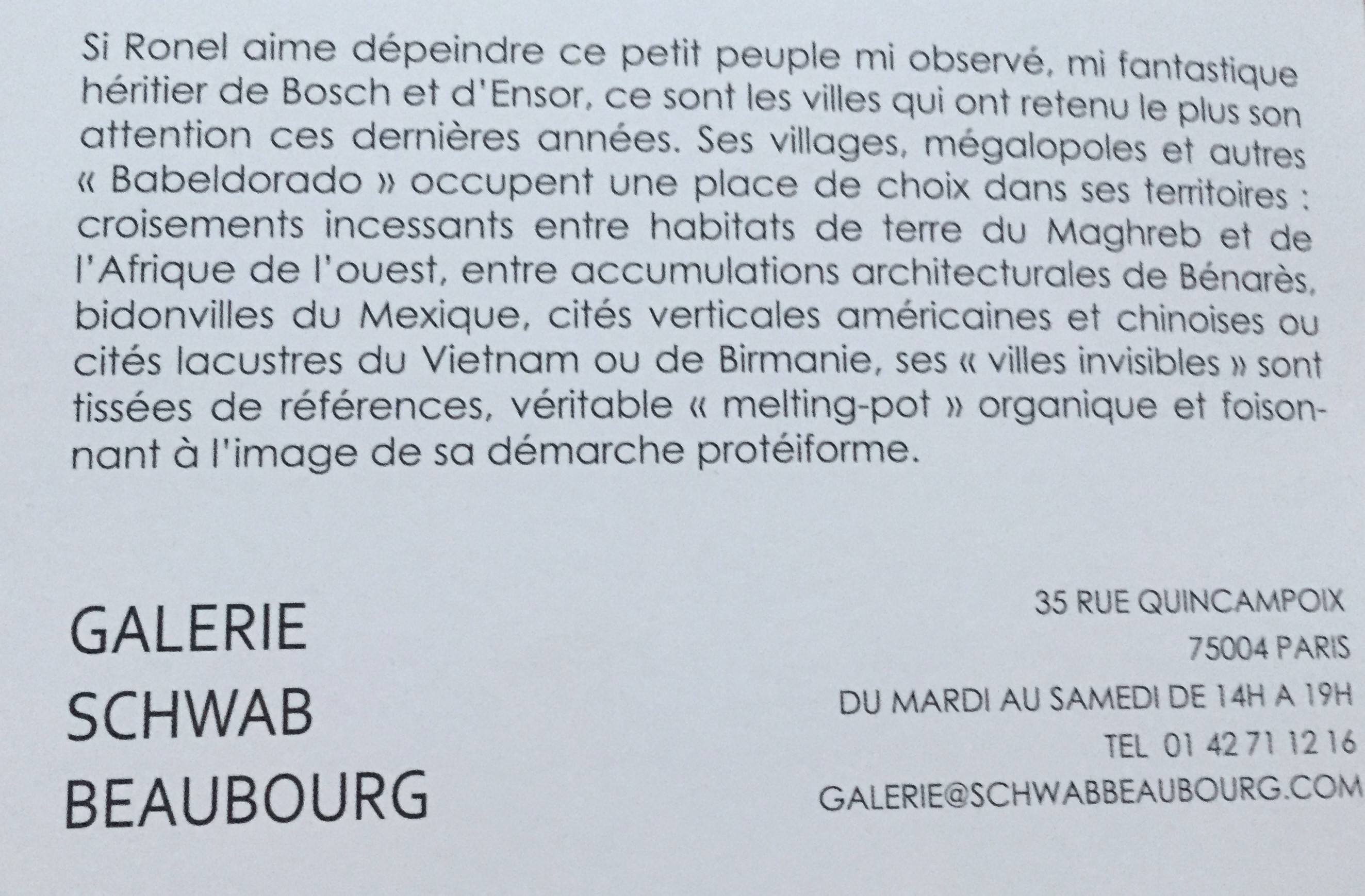 Catégories : art contemporain, galeries Comments: Commentaires fermés sur Galerie Schwab Beaubourg » Exposition Christophe RONEL jusqu’au 21 Mars 2020