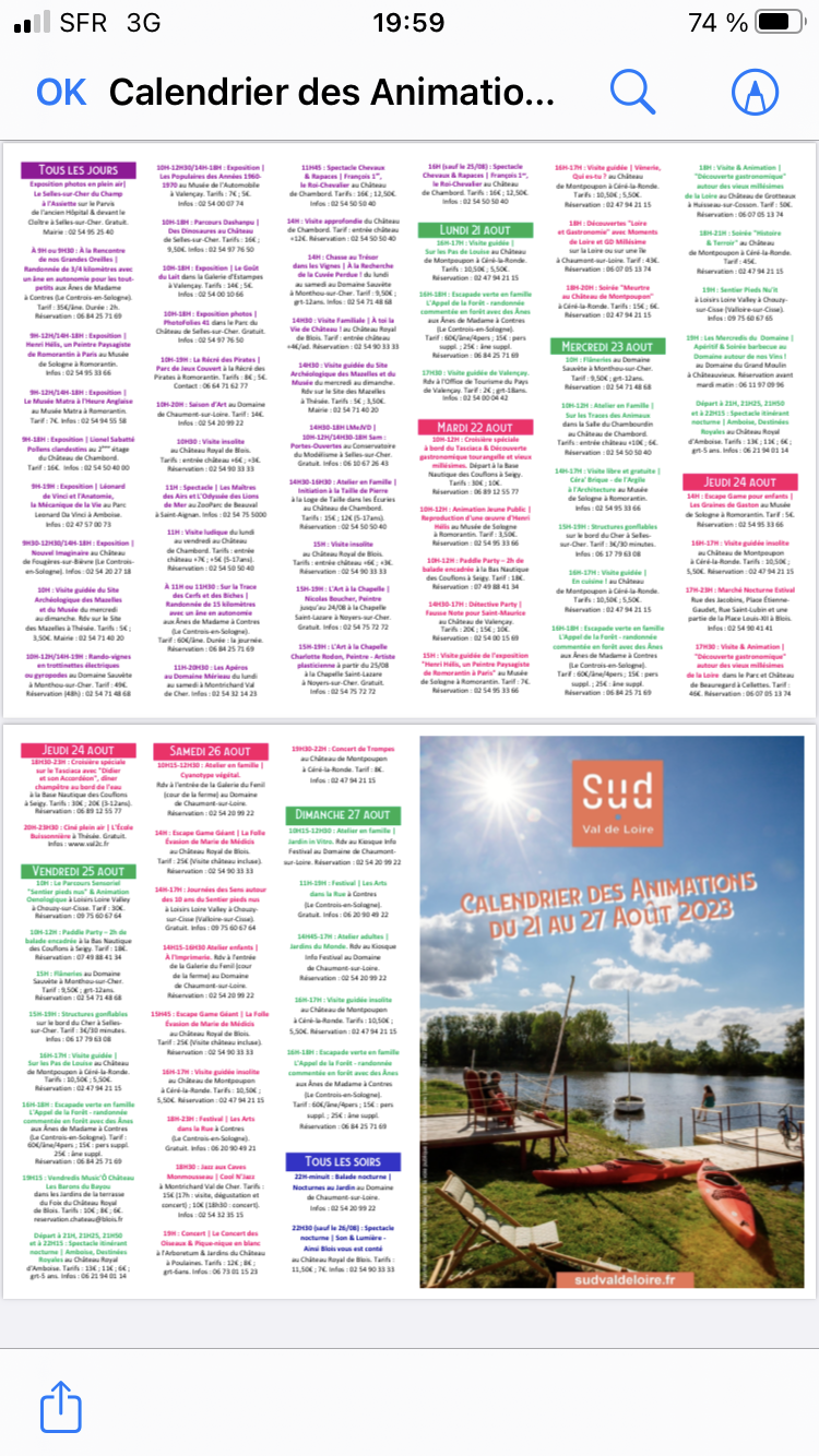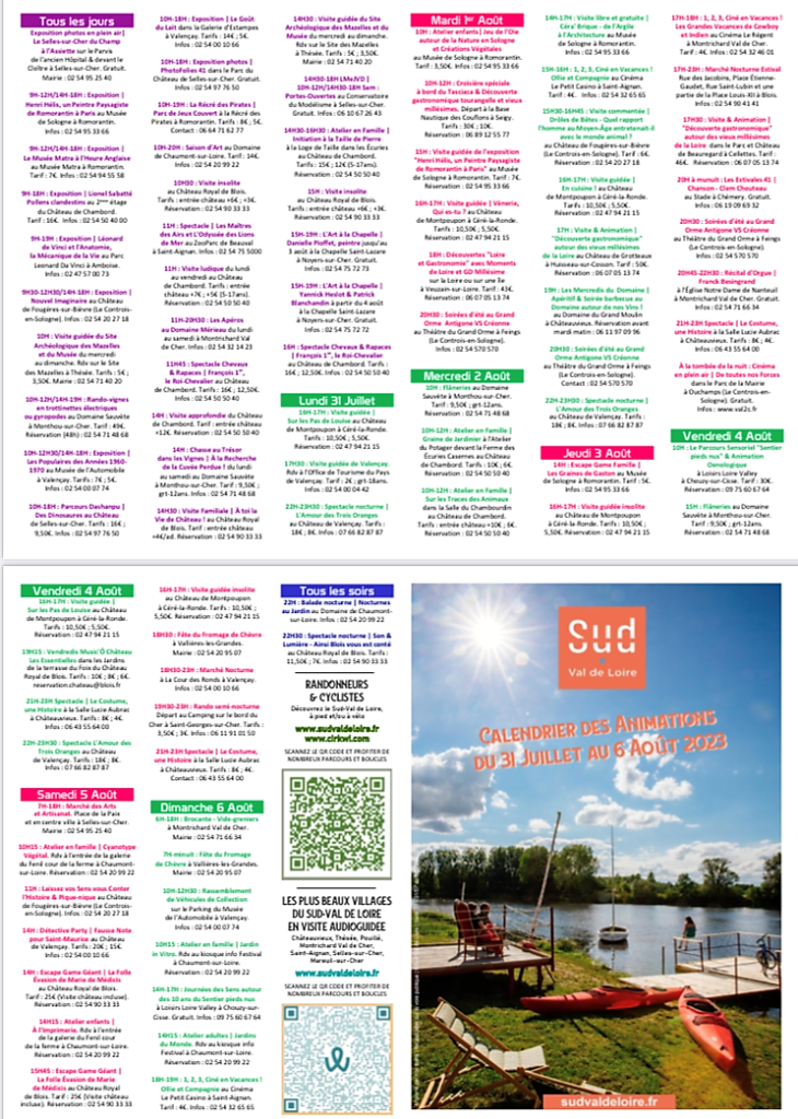 Comments: Commentaires fermés sur Val de Loire Sud – 07 Août au 13 Août 2023.