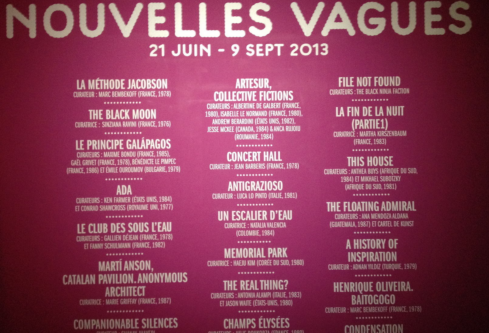 Catégories : art contemporain, conférences art & @rt Comments: Commentaires fermés sur « Nouvelles Vagues » au Palais de TOKYO………………………… »The Black Moon » 20 juin au 1er Septembre 2013