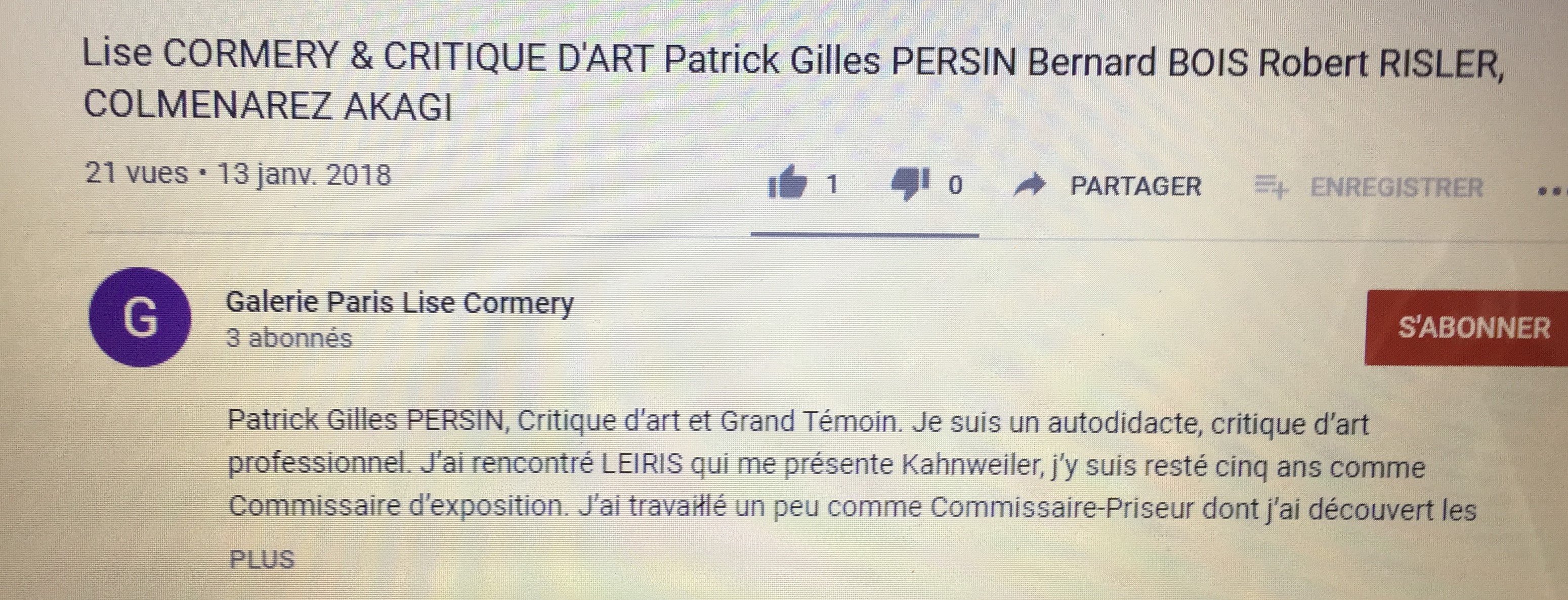 Catégories : conférences art & @rt Comments: Commentaires fermés sur Les visioconférences Art&@rt Jussieu sur YouTube (Lise Cormery Bernard Bois=