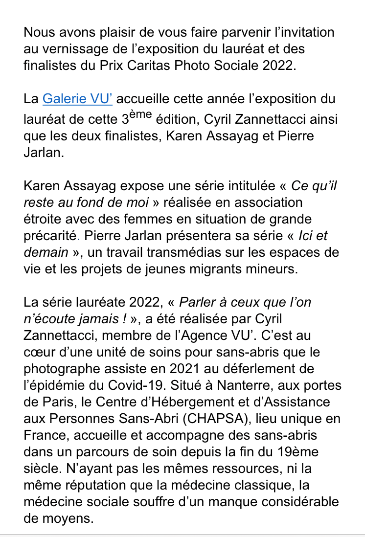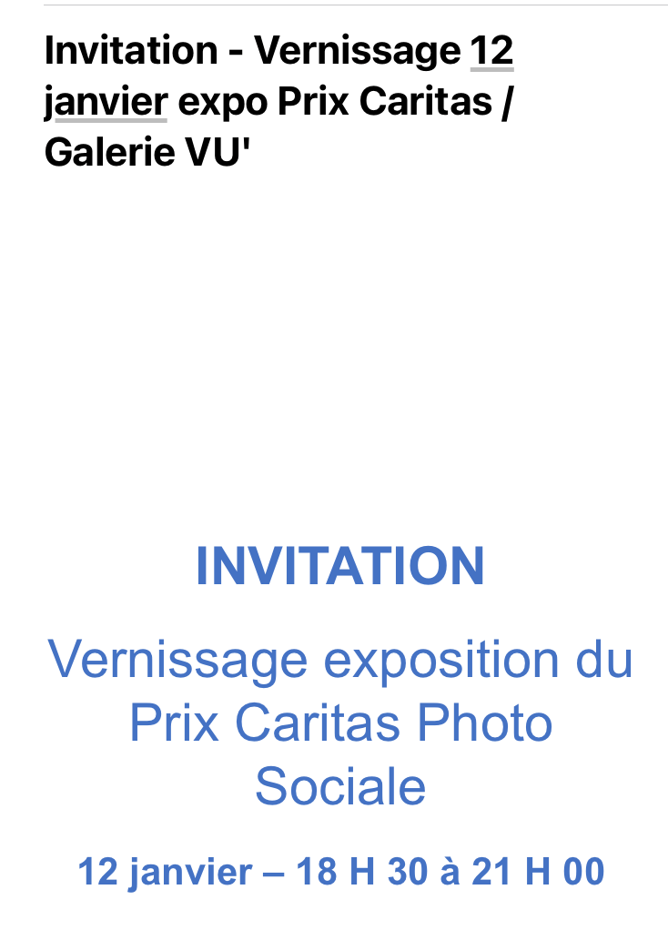 Comments: Commentaires fermés sur Prix Caritas / Galerie VU. le 12 Janvier 2023.( Prix Photo Sociale) 13/28 Janvier 2023.