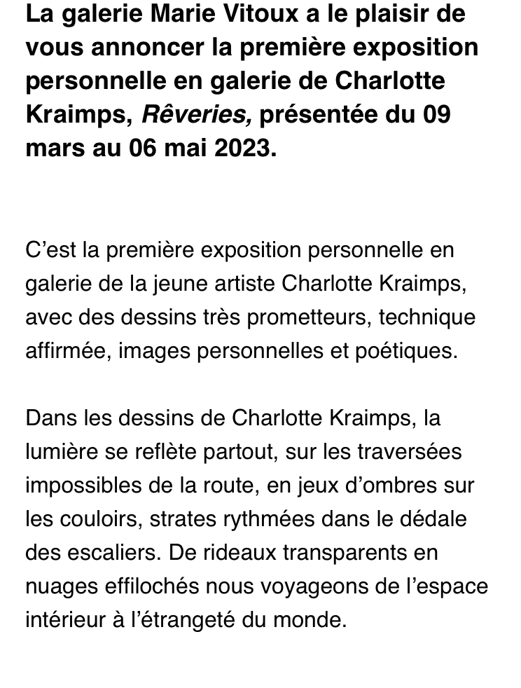 Comments: Commentaires fermés sur Galerie Marie Vitoux « Rêveries » de Charlotte Kraimps. à partir du 9 Mars 2023.