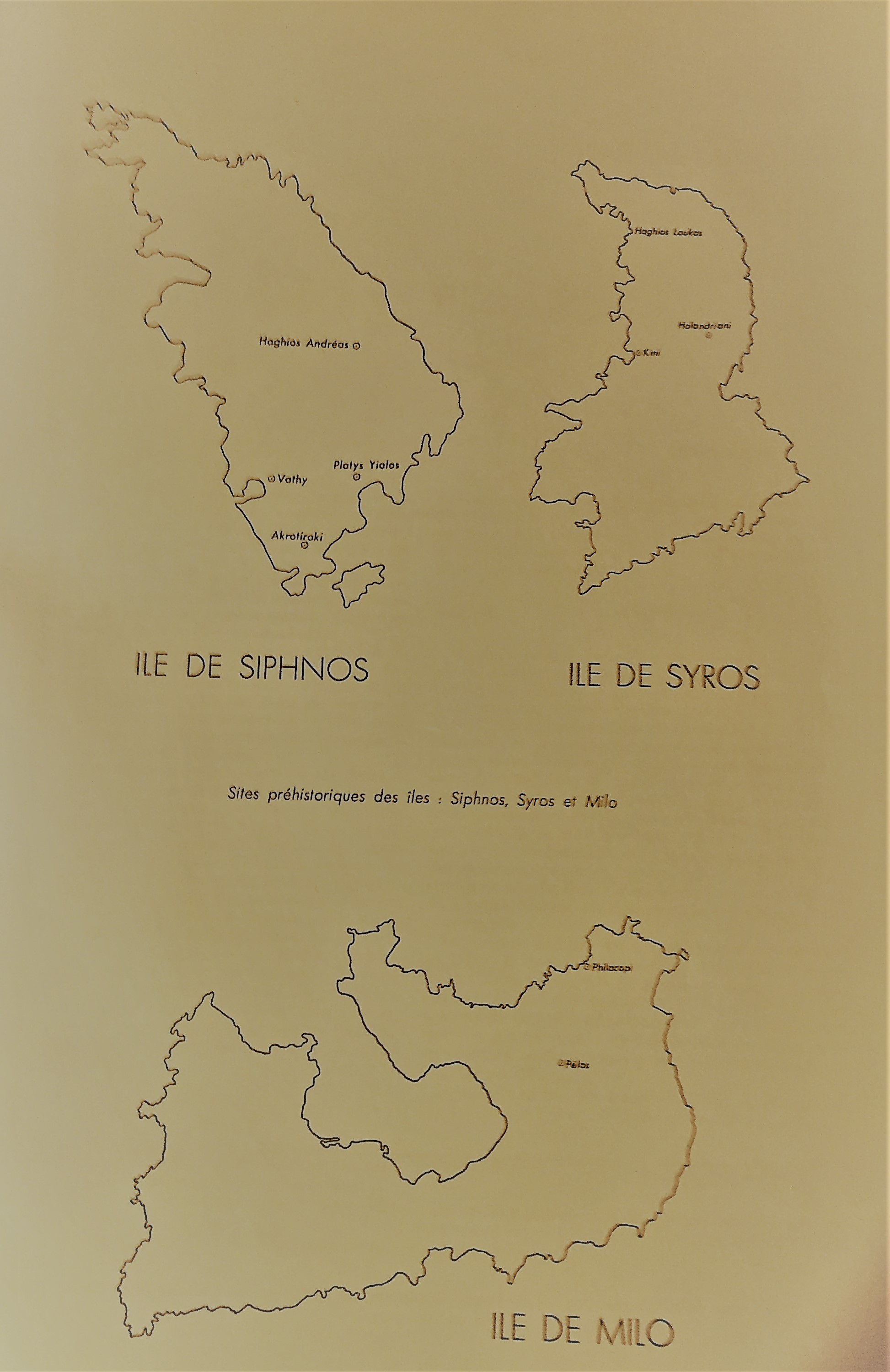 Les lieux de fouilles dans les cyclades.