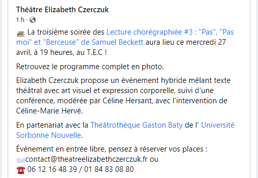 Comments: Commentaires fermés sur Théâtre Elisabeth Czerczuk le Mercredi 27 Avril 2022.