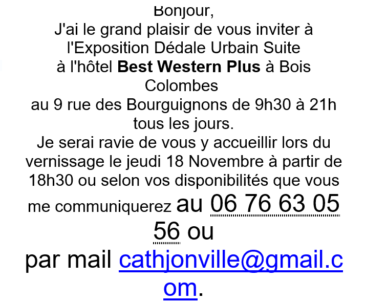 Catégories : Uncategorized Comments: Commentaires fermés sur ExPo « Dédale Urbain « de Catherine Jonville