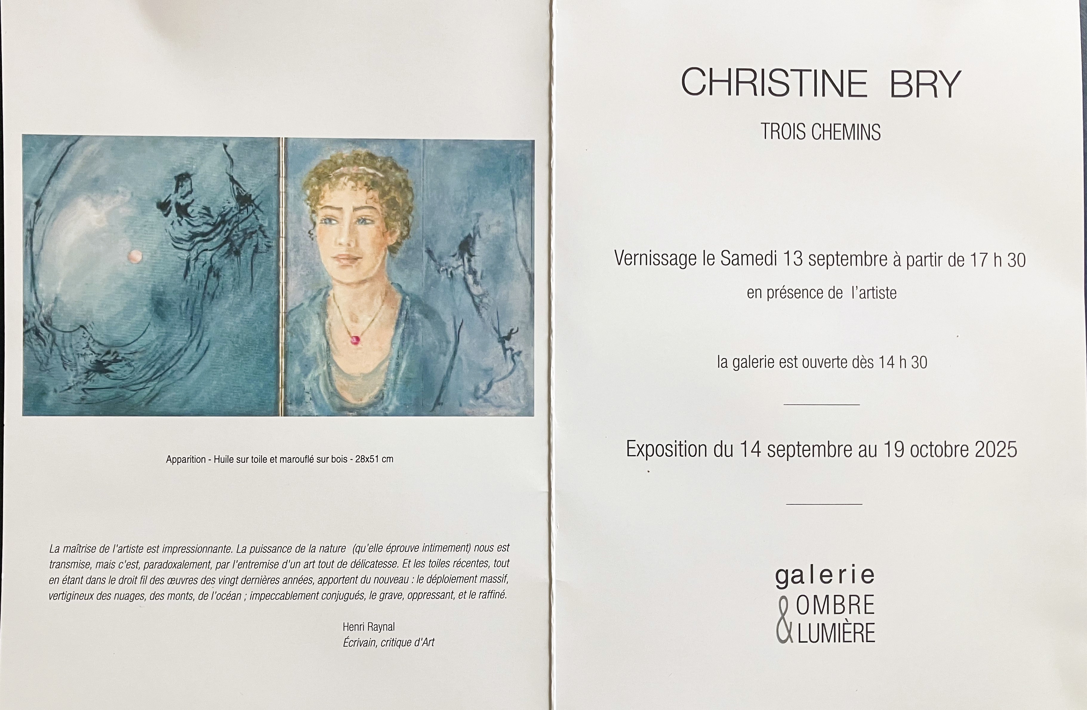 Galerie Ombre & Lumière – à Venterol (Drôme) – Exposition « Christine Bry » 14 Septembre au 19 0ctobre 2025.