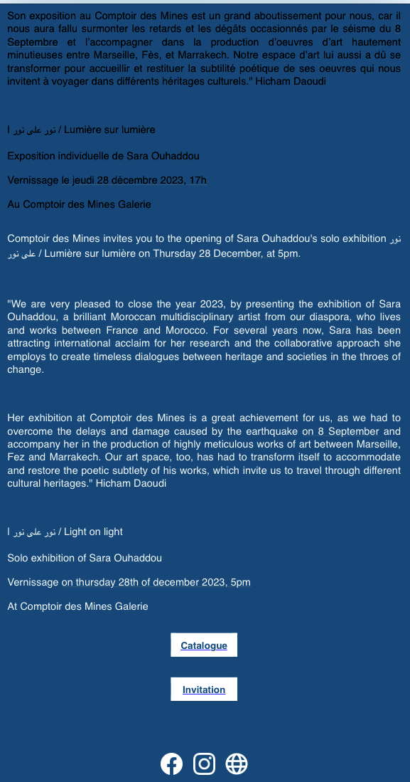 Comptoir des Mines ( galerie Marrakech ) » Lumière sur Lumière » exposition Sara Ouhaddou – à partir du 28 Décembre 2023.
