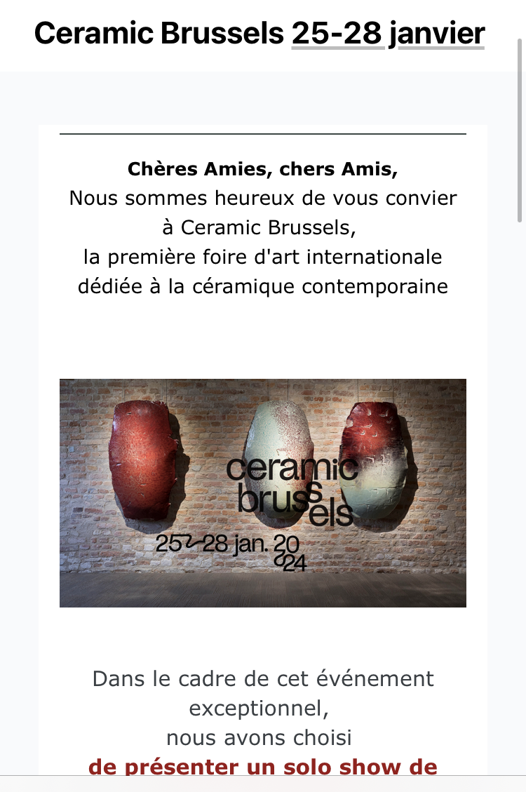 Galerie Capazza « Ceramic Brussels » 25/28 Janvier 2024.