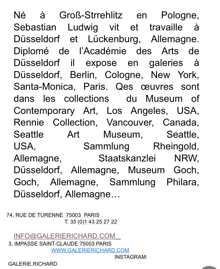 Comments: Commentaires fermés sur Galerie Richard – exposition Sebastian Ludwig – à partir du 27 Janvier 2024.