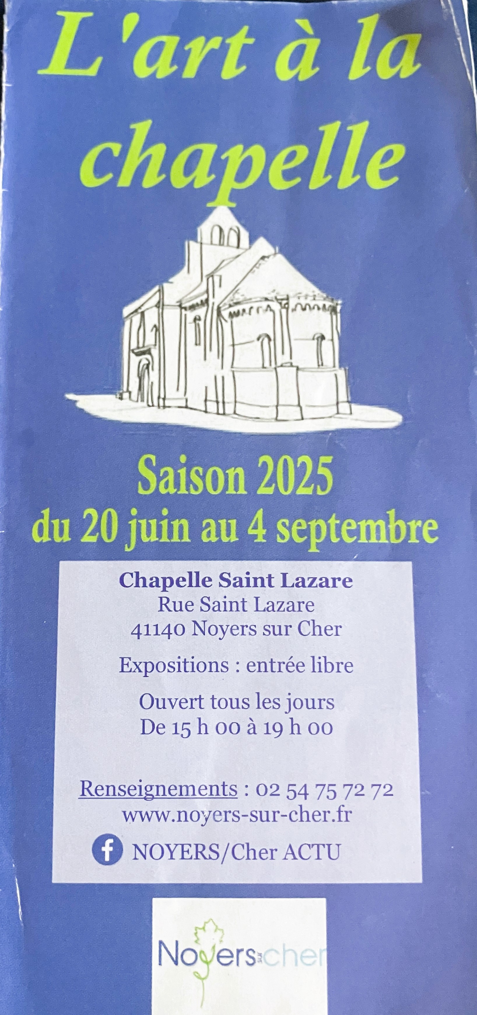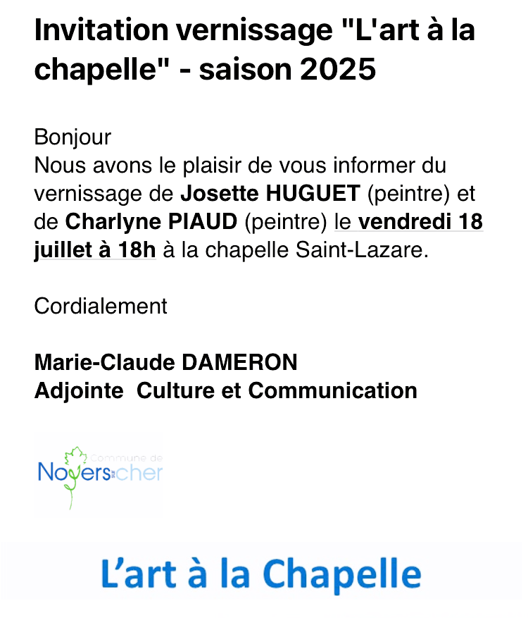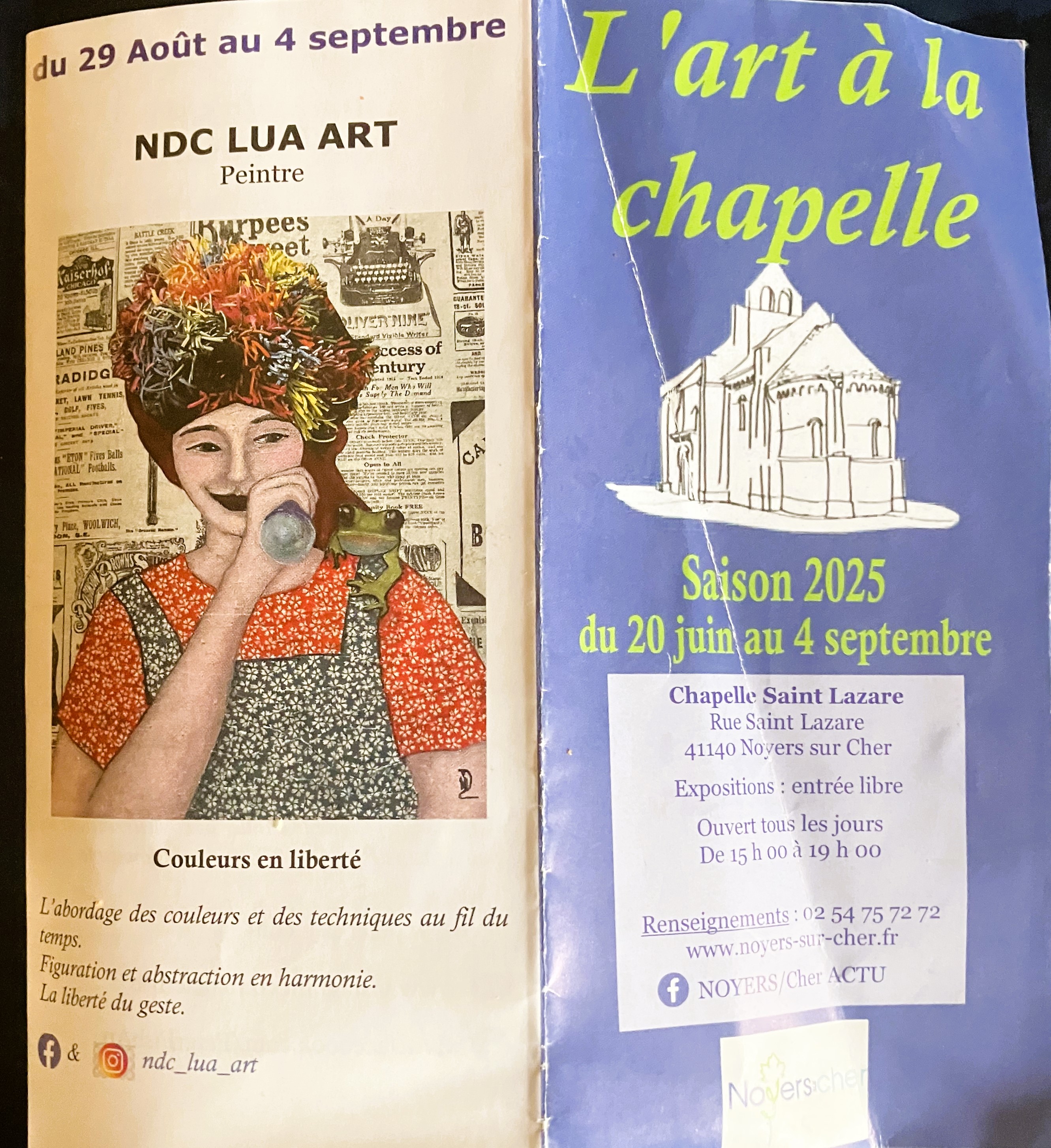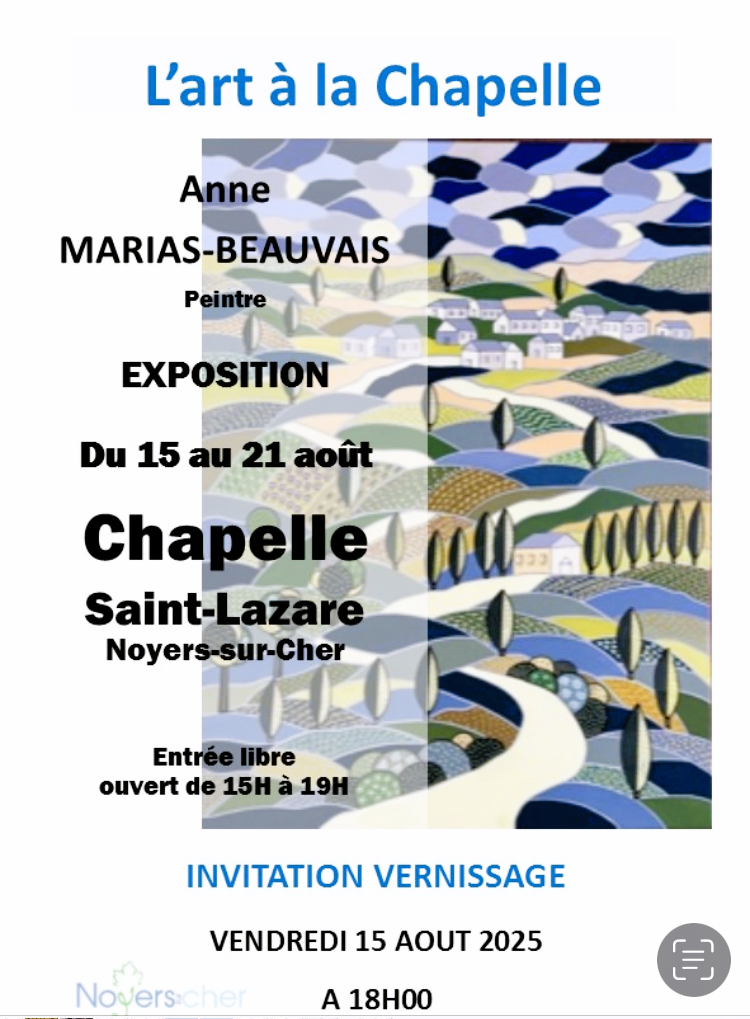 La Chapelle de Noyers-sur-cher : du 29 Août au 4 Septembre 2025. Exposition NDC LUA ART.