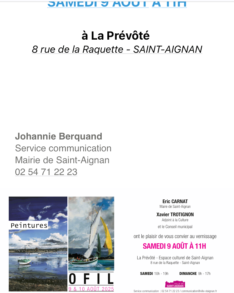 La Prévôté – à Saint-Aignan . Exposition OFIL -Le SAMEDI 9 Août 2025.
