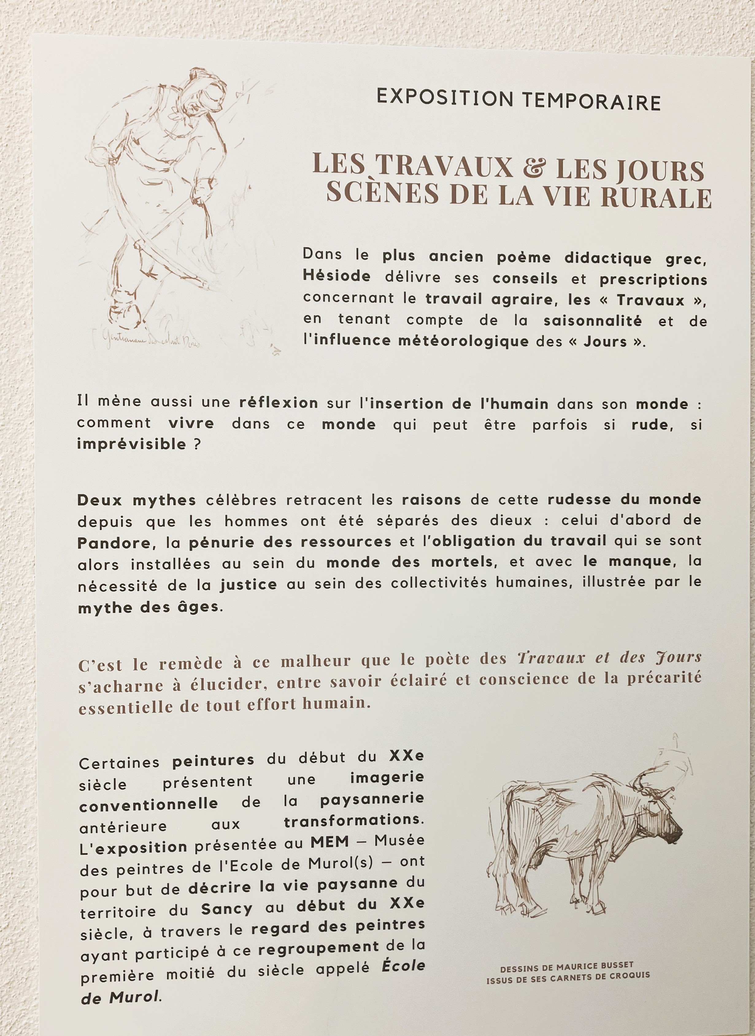 Cette superbe exposition marque les 25 ans du musée – et cette année on valorise le travail du monde des paysans – un dur labeur-des oeuvres marquantes des peintres de l’école de Murols. la France profonde au travail. Magnifique exposition. Un petit catalogue nous apporte de précieux renseignements sur l’exposition avec de précieuses notes de Philippe Auserve.