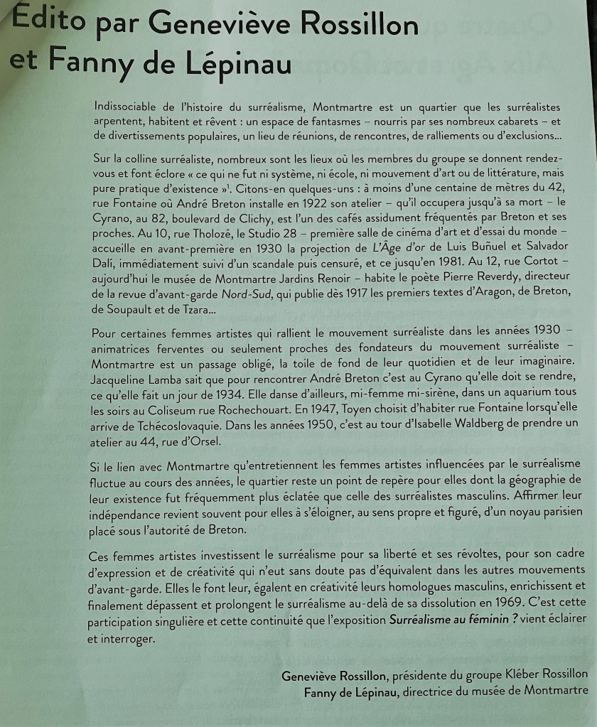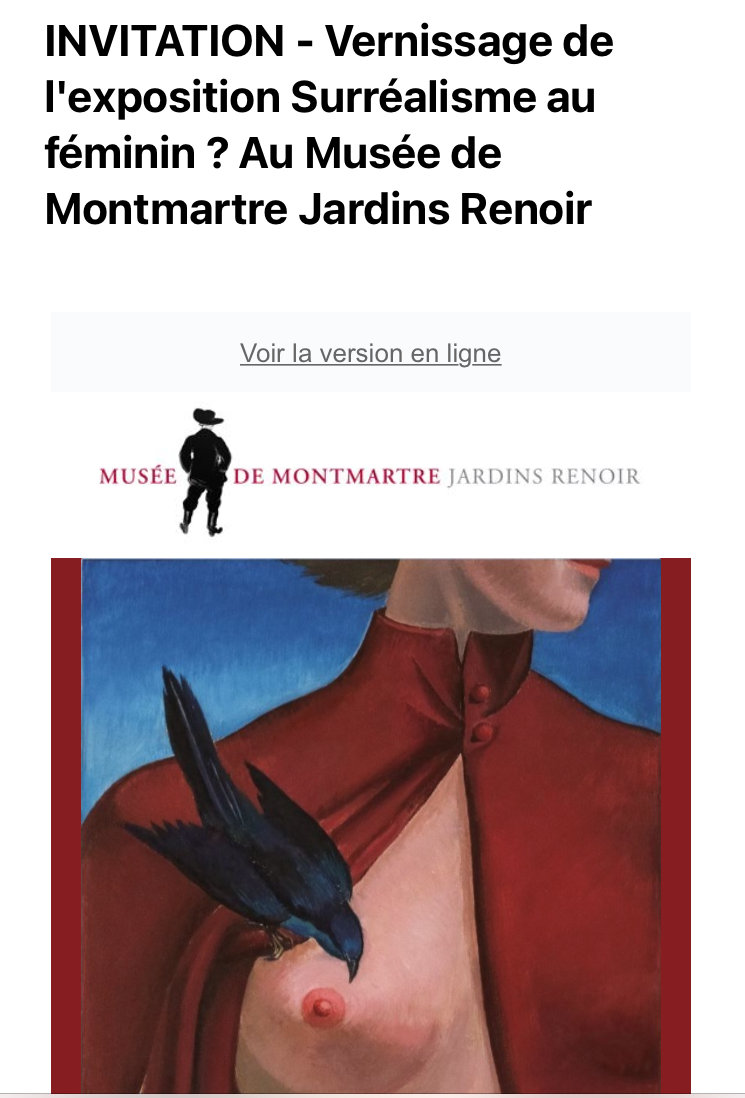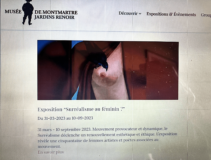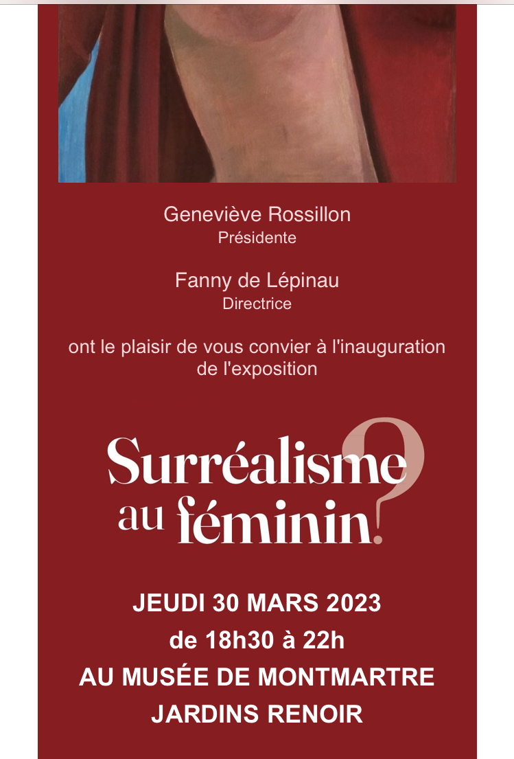 Comments: Commentaires fermés sur Musée de Montmartre « Surréalisme au féminin » à partir du 31/03/2023.(derniers jours – jusqu’au 10 Septembre 2023.)