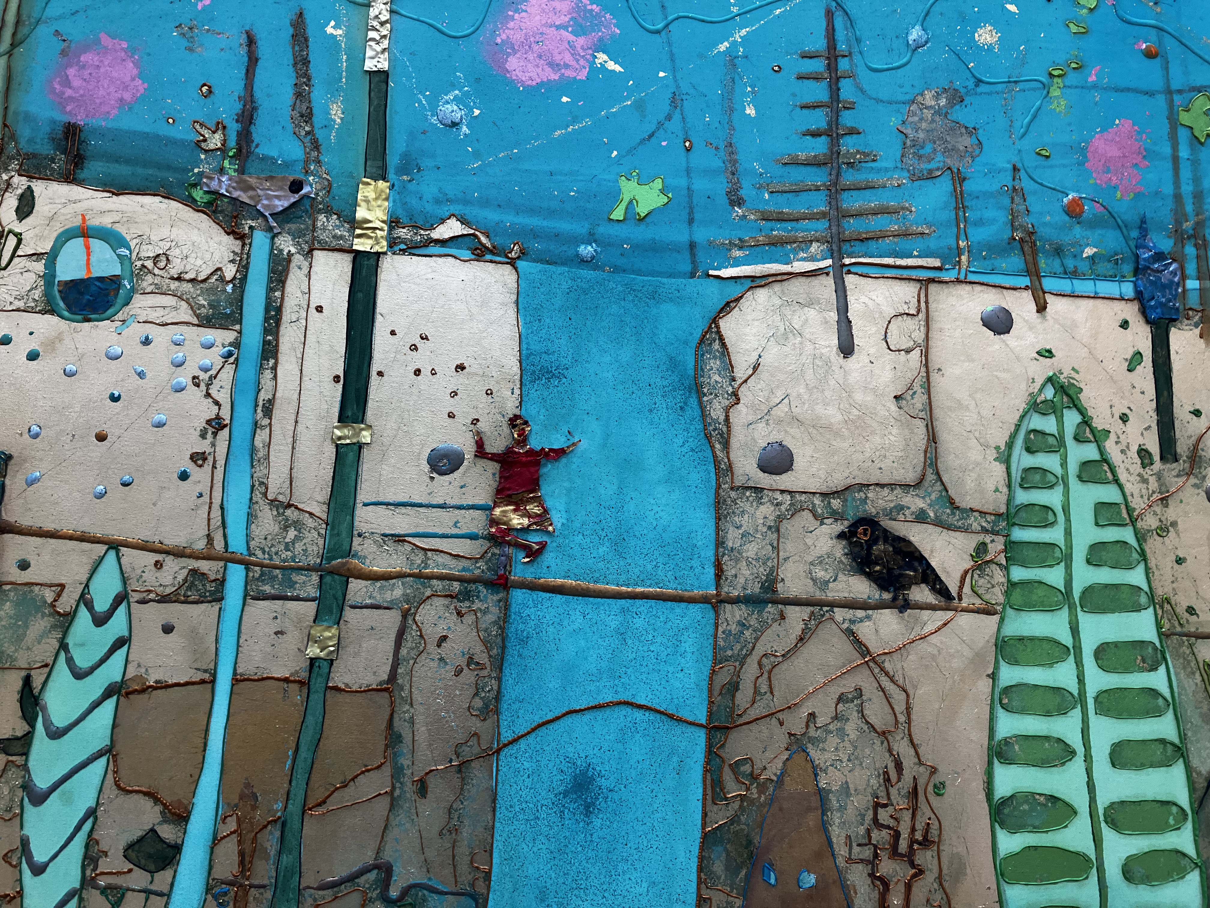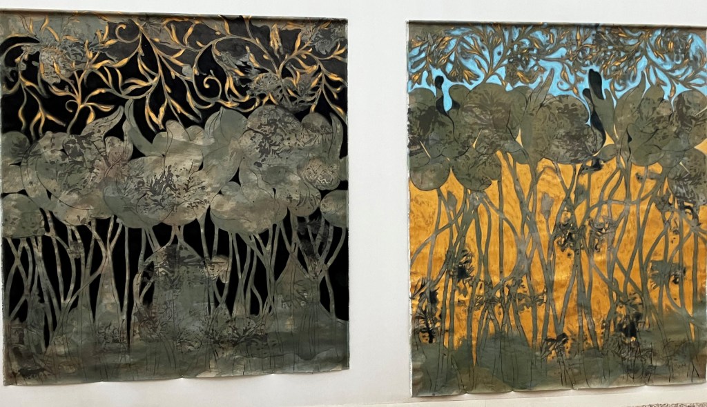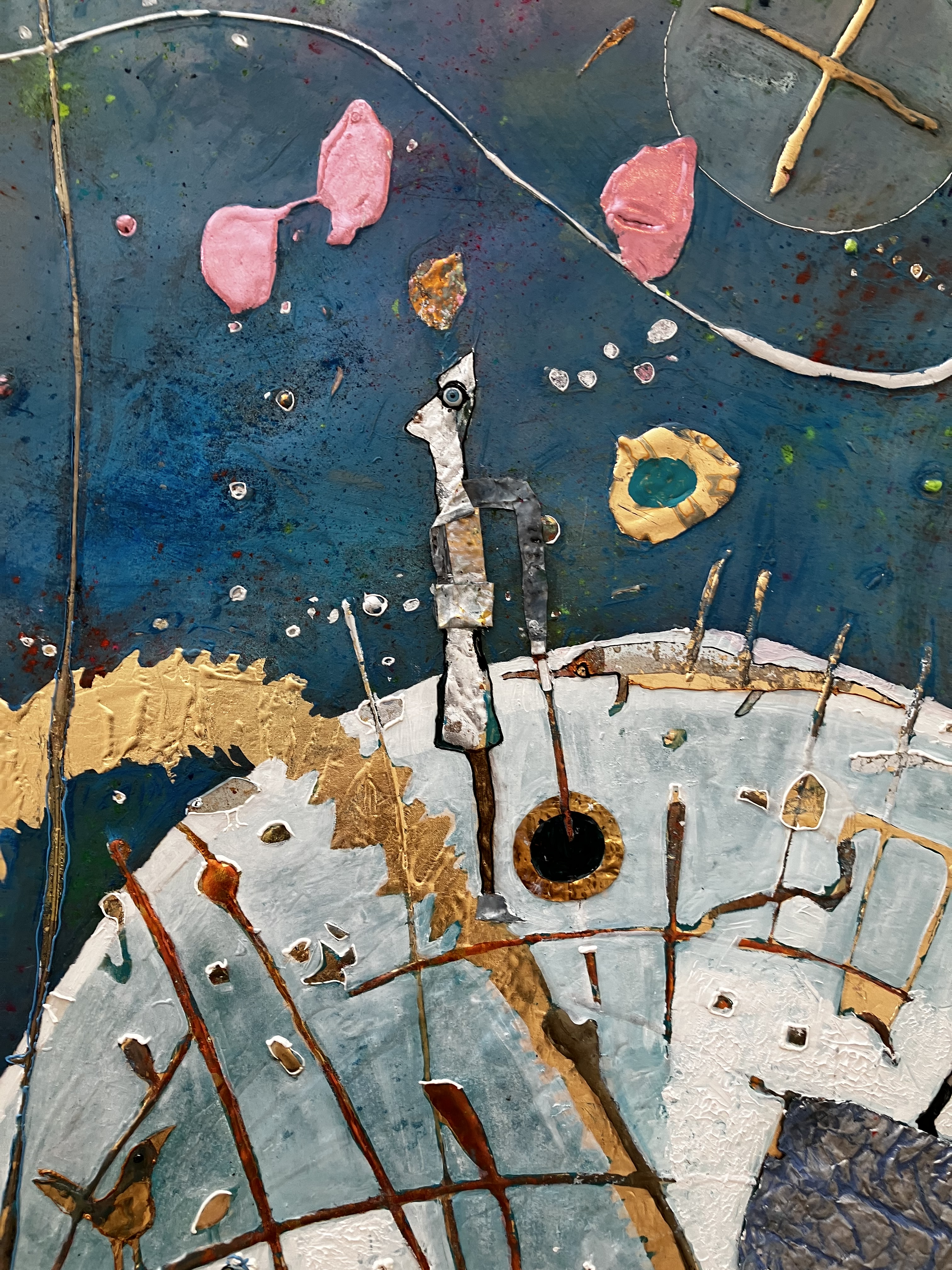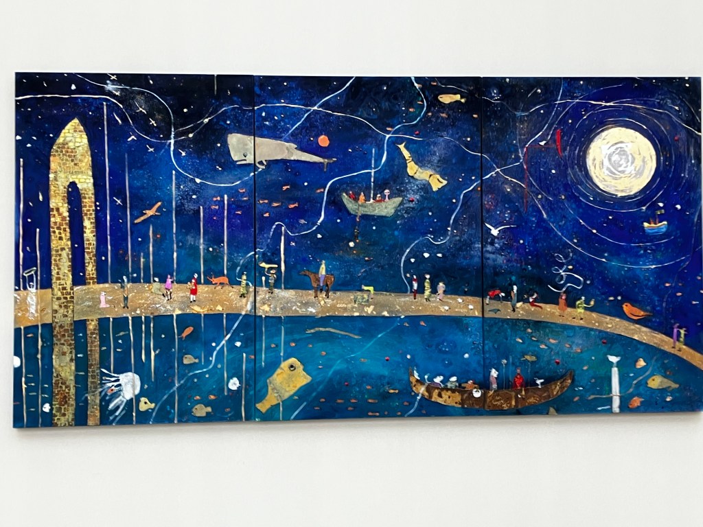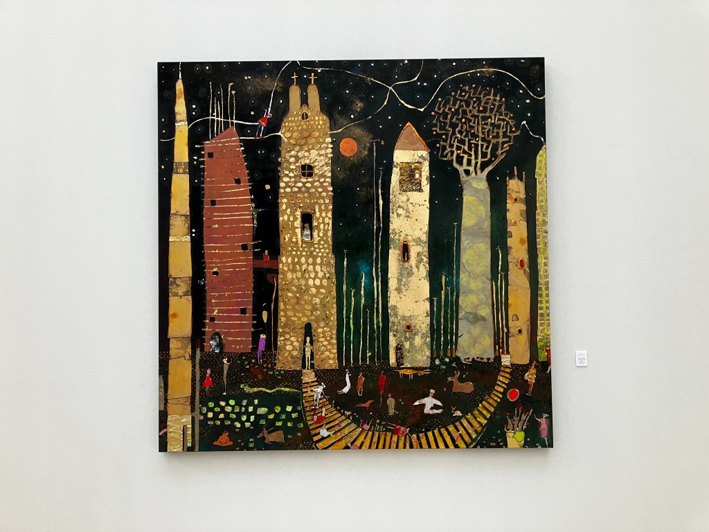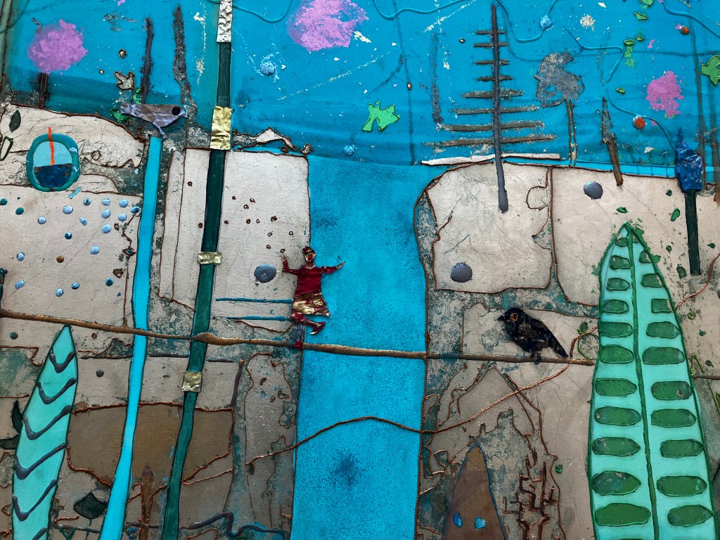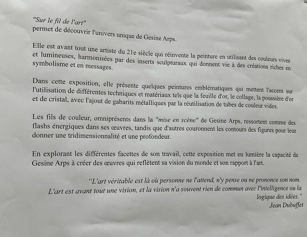 Un superbe travail -ici l’onirisme – les matières- l’univers de Gesine Arps- c’est tout un voyage – une évasion – par les couleurs et le mouvement de ses compositions. Une vingtaine d’oeuvres ici présentes.
