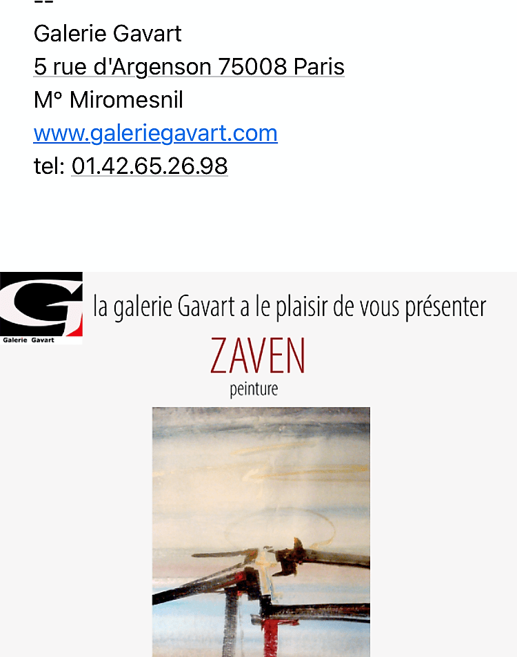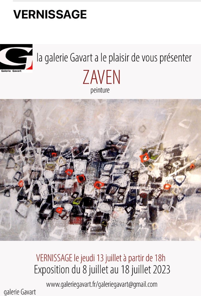 Galerie Gavart – exposition ZAVEN – 8/18 Juillet 2023.