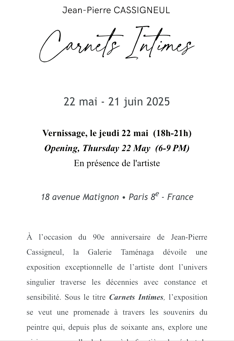 Comments: Commentaires fermés sur Galerie Taménaga » exposition Cassigneul -Carnet Intimes » 22 Mai au 21 Juin 2025.