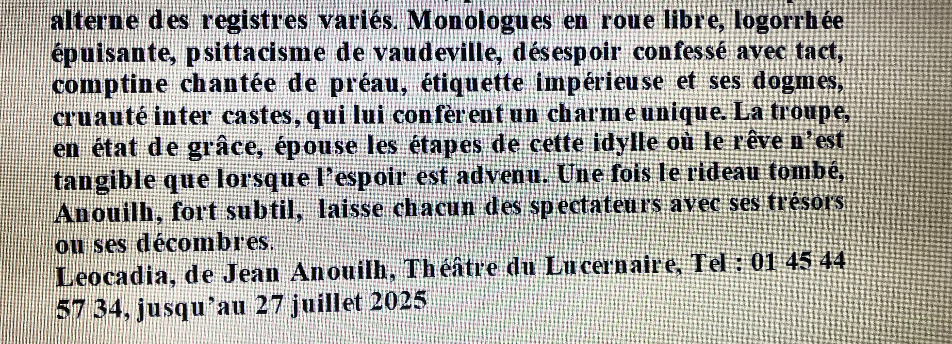 Comments: Commentaires fermés sur Au théâtre ce soir : Leocadia-de Jean Anouilh- un article de Pierre Marc Levergeois -au Théâtre du Lucernaire.