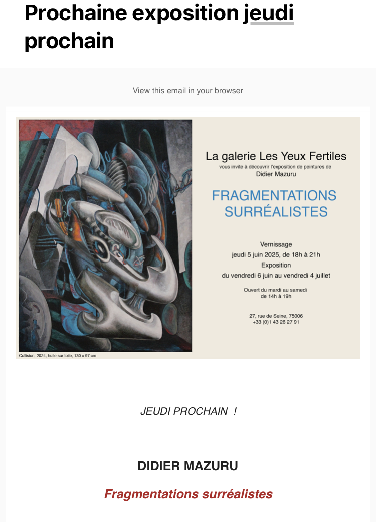Comments: Commentaires fermés sur Galerie – Les Yeux Fertiles – le Jeudi 5 Juin 2025: Didier Mazuru –