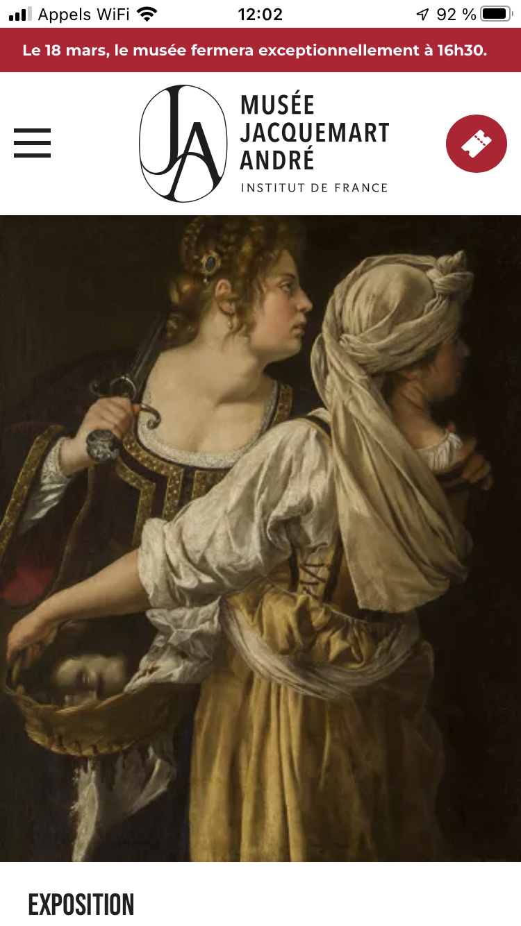 Comments: Commentaires fermés sur Musée Jacquemart André : ARTEMISIA à partir du 19 Mars 2025.