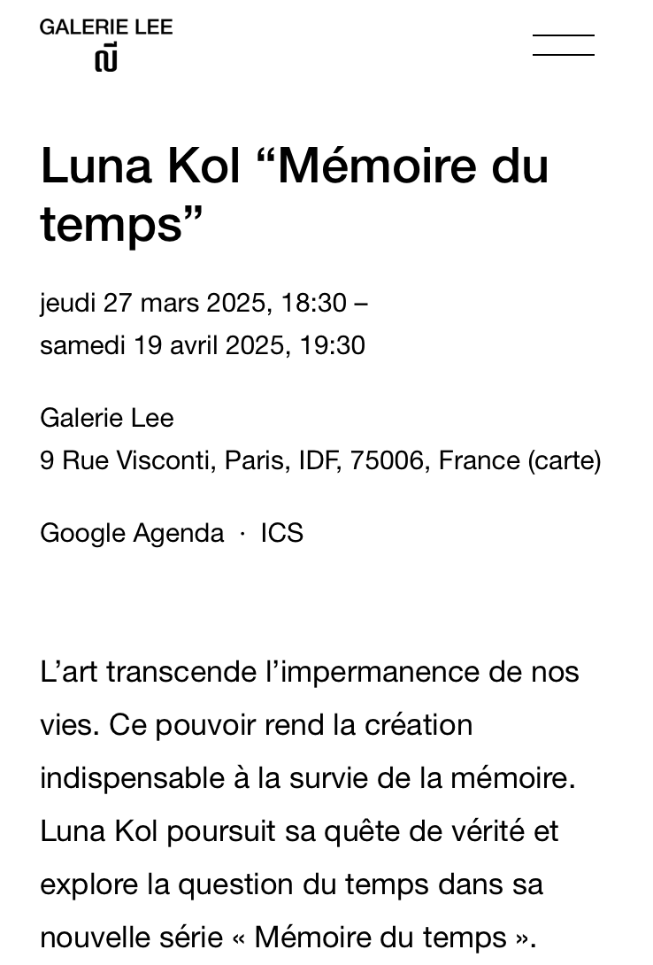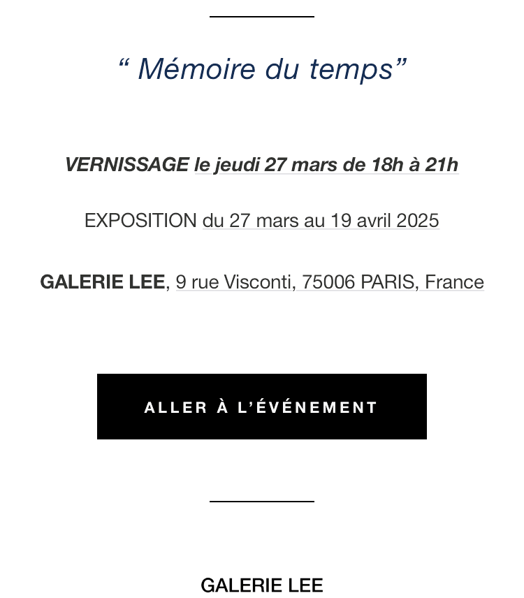 Comments: Commentaires fermés sur Galerie Lee – exposition Luna Kol – « Mémoire du temps » à partir du 27 Mars 2025.