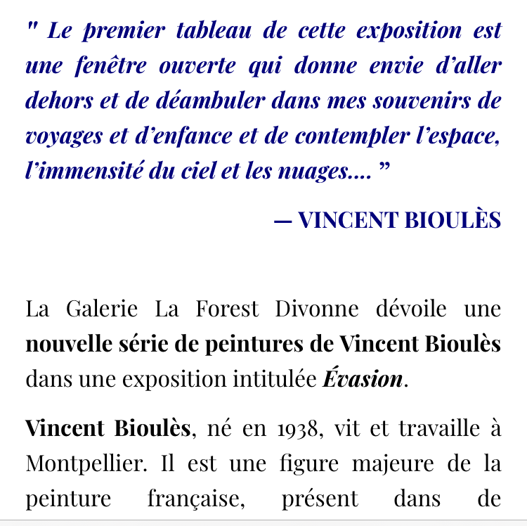 Comments: Commentaires fermés sur Galerie La Forest Divonne – exposition Vincent Bioulès- le jeudi 20 Mars 2025.