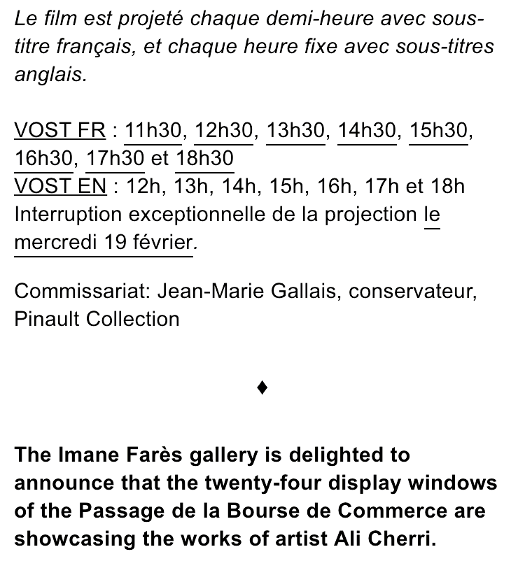 Comments: Commentaires fermés sur Galerie Imane Farès « Ali Cherri » Bourse de Commerce- 8 février au 2 Mars 2025.