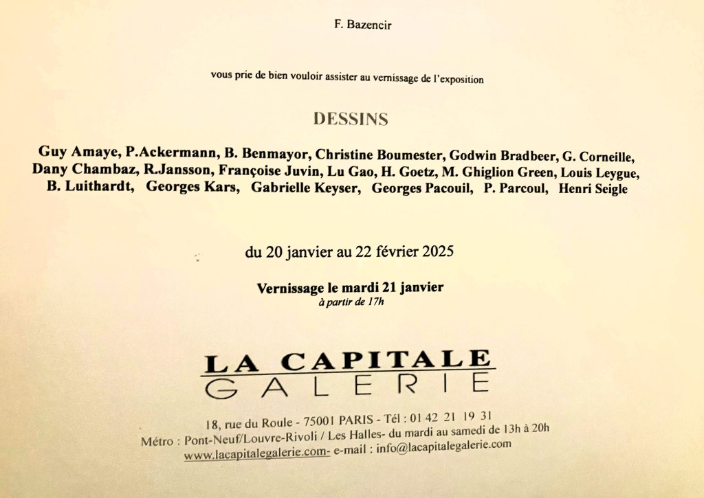 Comments: Commentaires fermés sur Galerie La Capitale « Dessins » jusqu’au 22 Février 2025.