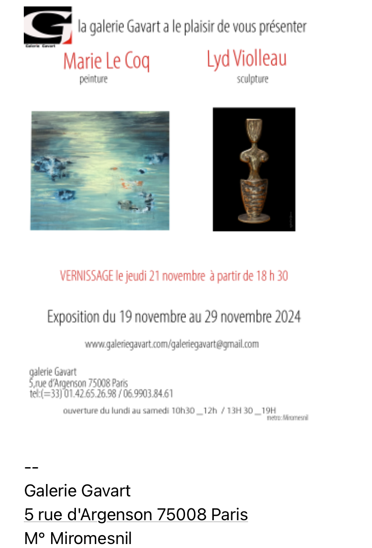 Comments:Commentaires fermés sur Galerie Gavart exposition : Marie Le Coq – Lyd Violleau -19/29 Novembre 2024.
